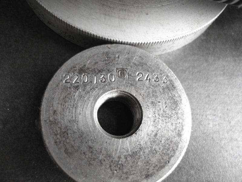 Jo a není to vtip. Začal jsem rozebírat a čistit . Každá součástka je označená a tak mě napadlo, že by se podle způsobu označení dal najít výrobce. Přidávám foto rozebraného horního suportu, noniusu, vřetene a vzorek původní barvy. Pro představu - vnější průměr hlavního ložiska (konus) je 58 mm, to menší ložisko má 35 mm. Což mi přijde na stolní soustruh solidní. Celková délka soustruhu je přibližně 600, šířka (spodní suport) 450 mm.