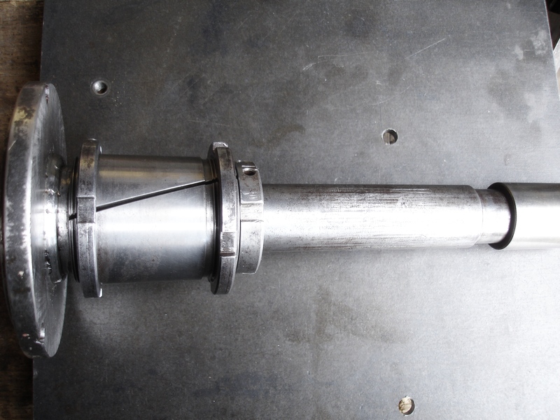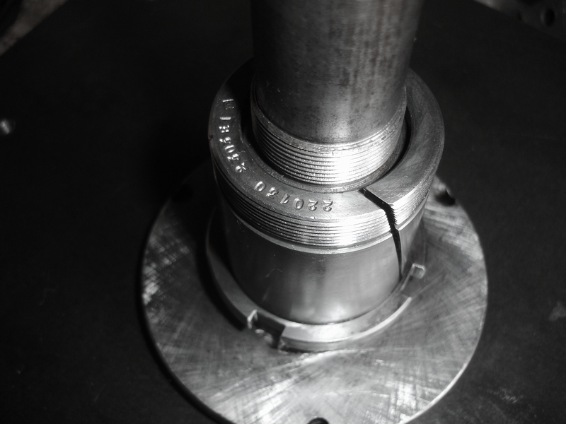 No ještě sundám ložiska. To menší by se dalo vyměnit za bronzové a u většího ( pokud tam bude dost masa ) zvětšit díru a vložit tam bronzové. Vůle by se pak seřizovala těmi maticemi na konusu stejně jako teď, jen by se točila hřífel s bronzovým ložiskem uvnitř. Asi by to nebyl taky žádnej rychlotoč, ale možná lepší.