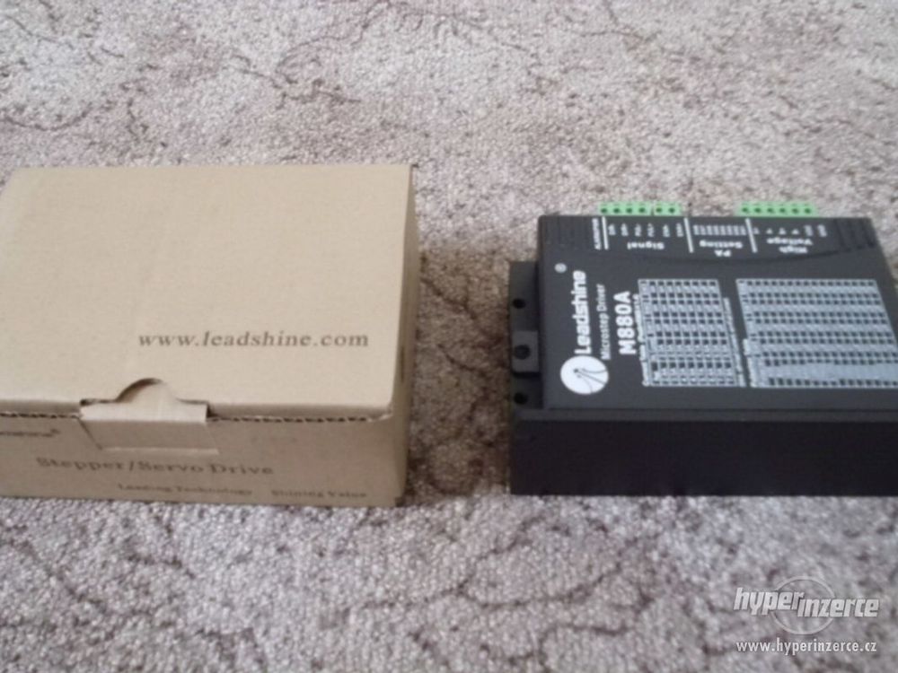 prodám 2ks driverů M880A pro 2-fázové krokové motory, max. 80V, 7.8A. -Napájecí napětí do +80VDC, špičkový proud do 7,8A -Nastavení proudu fáze od 1,8 do 7,8A (8 hodnot) -16 volitelných rozlišení kroku až do 51200 kroků/ot -Maximální vstupní frekvence 300 KHz -Opticky izolované vstupní signály -Vhodný pro 2-fázové a 4-fázové krokové motory -Ochrana proti zkratu na výstupu, podpětí a přepětí napájecího napětí -Automatická redukce proudu po zastavení motoru.