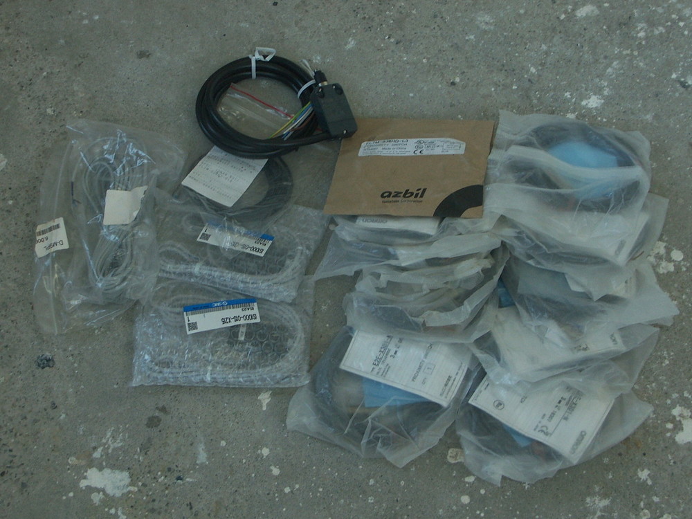 10ks indukčních snímačů 12mm, 1ks 8mm, 2ks tlakové spínače na vzduch, 2ks magnetické spínače a jeden mechanický končák.