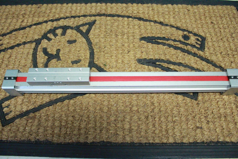 Bezpístnicový lineární, chybí štítek, ale je to zřejmě Norgen, nebo Origa. Rozměr 40x40 mm, délka 440 mm, funkční délka 270 mm.