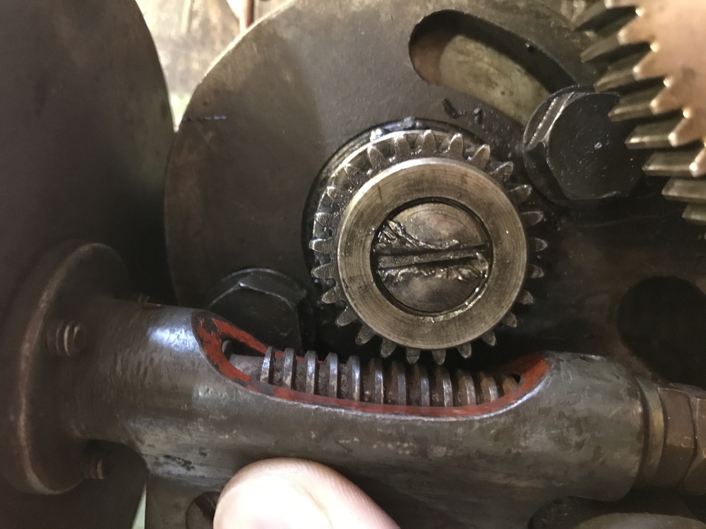 Ozubené kolo nemusí byť silou mocou šnekové, videl som to používať aj na obyčajnom s naklopeným šnekom. To hnané koleso mohlo byť aj na spoločnom tŕni s obrábaným kolesom. nemáš tam nejaké ozubené koleso (kolesá) navyše?