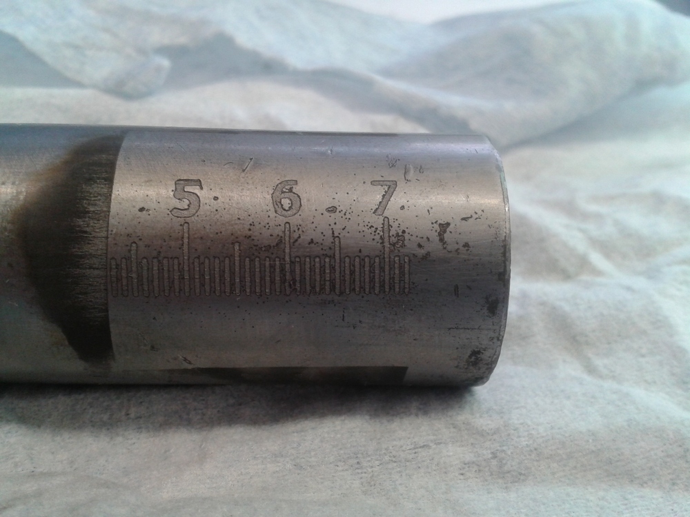 očistiť jemne scotchbrite vlnou, odmastiť a nastriekať POSITIV 20 spray na plošné spoje. Nakresliť stupnicu a nechať si na osvitke vyrobiť predlohu, osvietiť, vyvolať. Procedúra je identická ako pri plošných spojoch. Následne opakovane potrieť studeným čiernidlom na zbrane. Po uschnutí utrieť zvyšok laku acetónom.