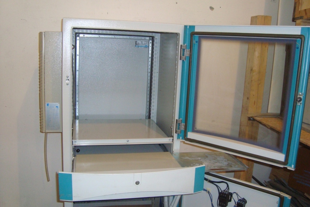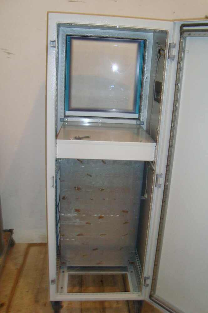 rozvaděč Rittal PC 4603703 ser.č. 002145 s klimatizací typ SK3203100 s výsuvem na klávesnicí, vrchním policí na PC.