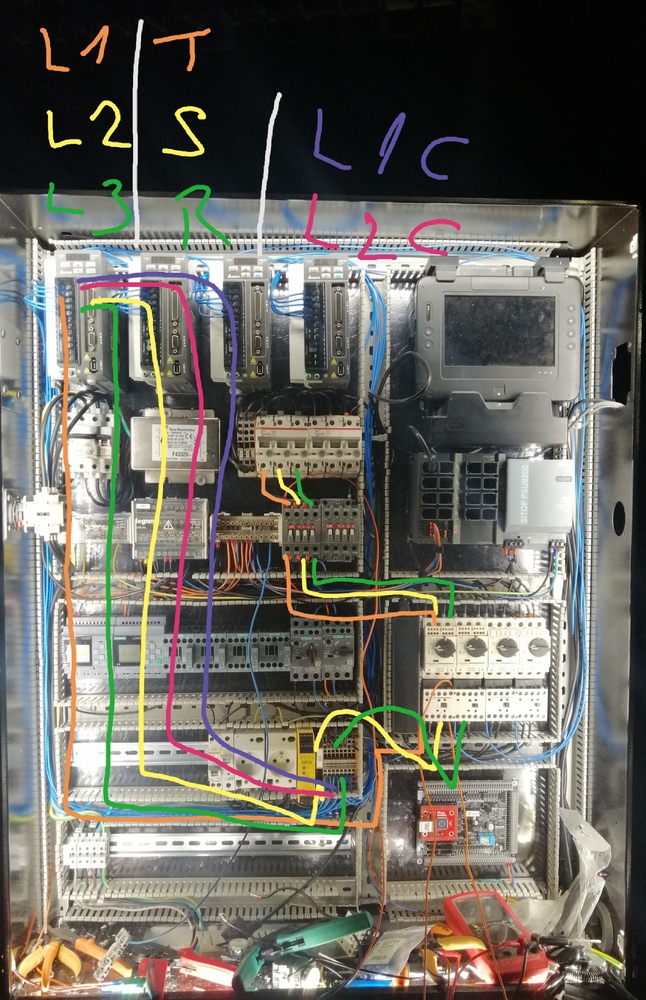 Jestli jsi to zapojil dle té fotky, tak jsi pustil 400V nejen do výkonových vstupů (kde by to teoreticky mohly vestavěné ochrany pobrat), ale i do napájení řídící části (L1C a L2C). Pokud budeš zapojovat další kus na jednu fázi , tak si v manuálu k tomu najdi příslušné schema.