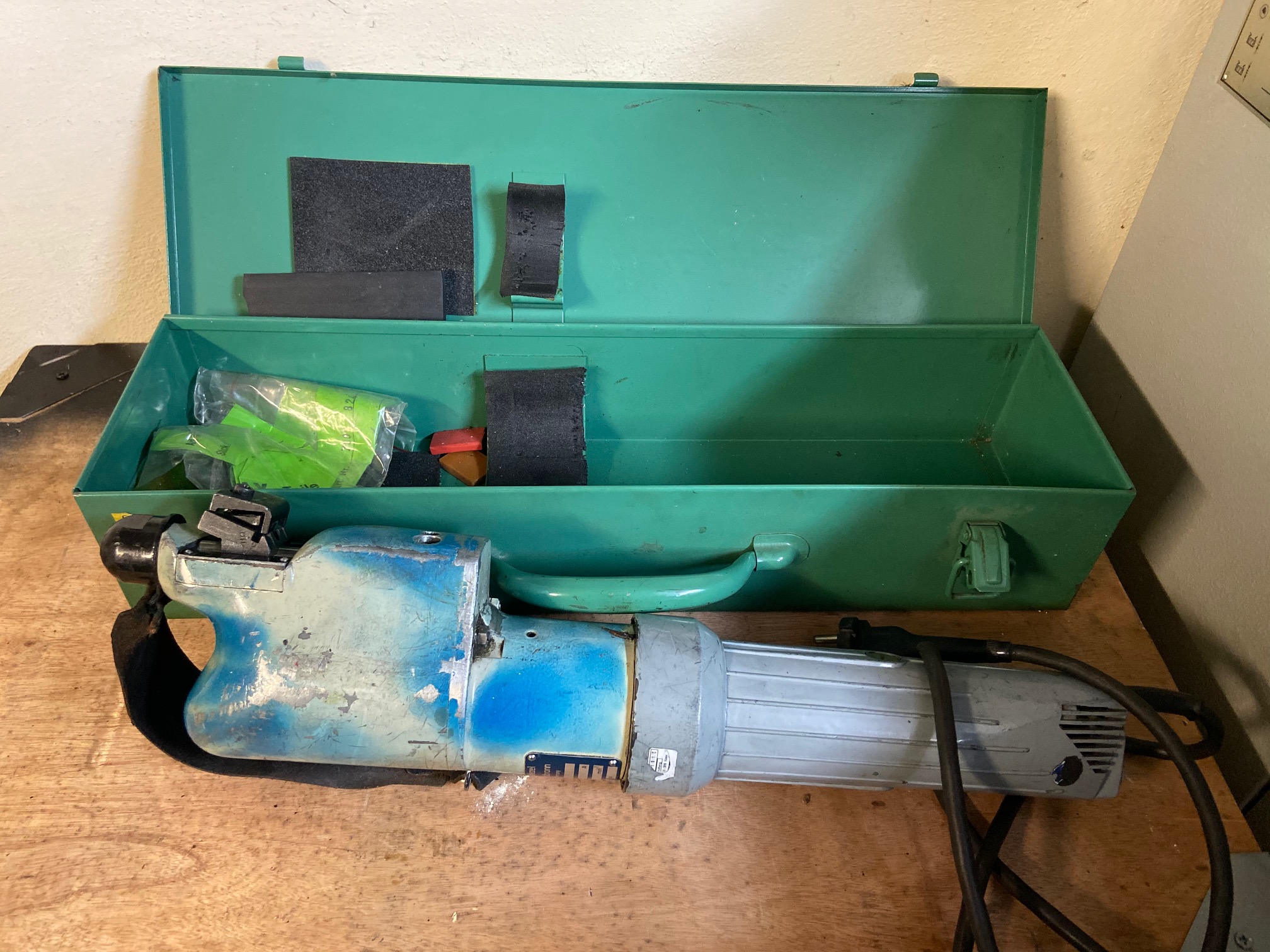Škrabák elektricky funguje mám ale podozrenie že su v predu volne vodítka.Asi nie je problém to spraviť ale treba Brusku na plocho a kaliť.Dalej sa musi kupiť guma na uloženie škrabáku.Preto predávam ako nefunkčný.Alebo na náhradné diely.Škrabáky bohužial nie su.V balení sú náhradné uhlíky.