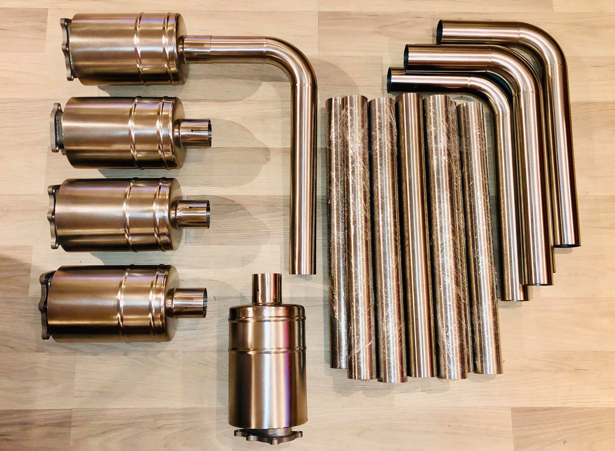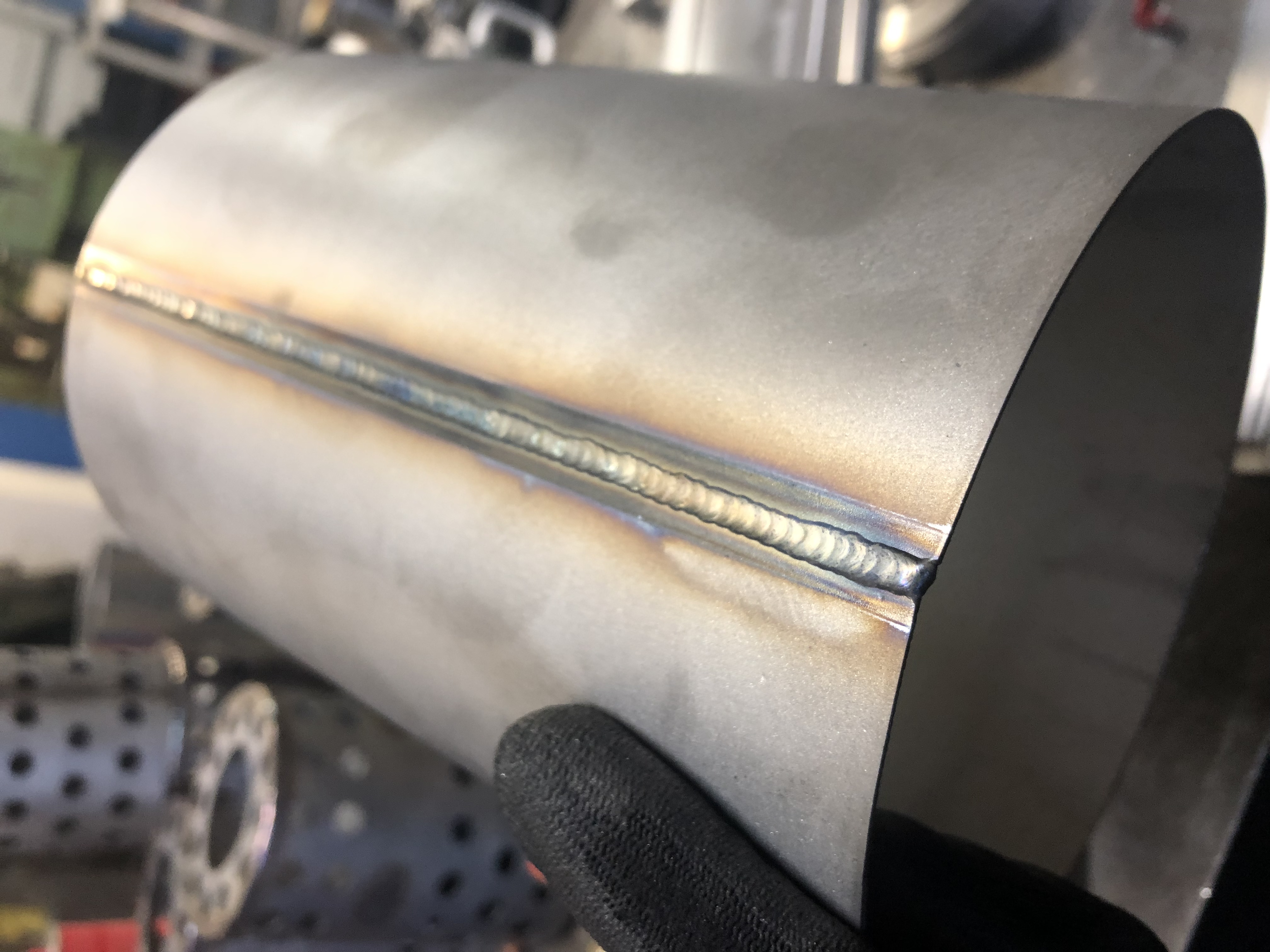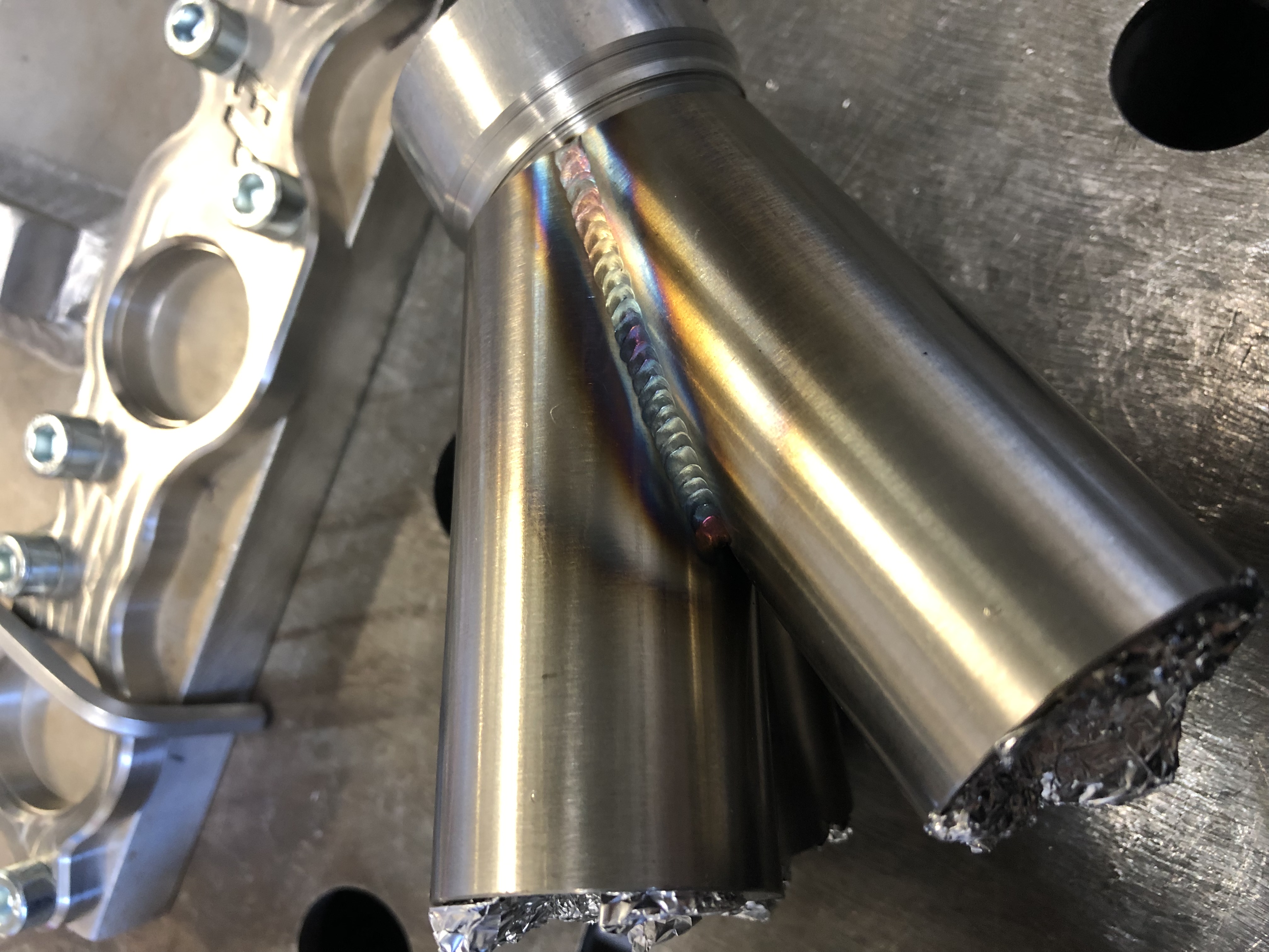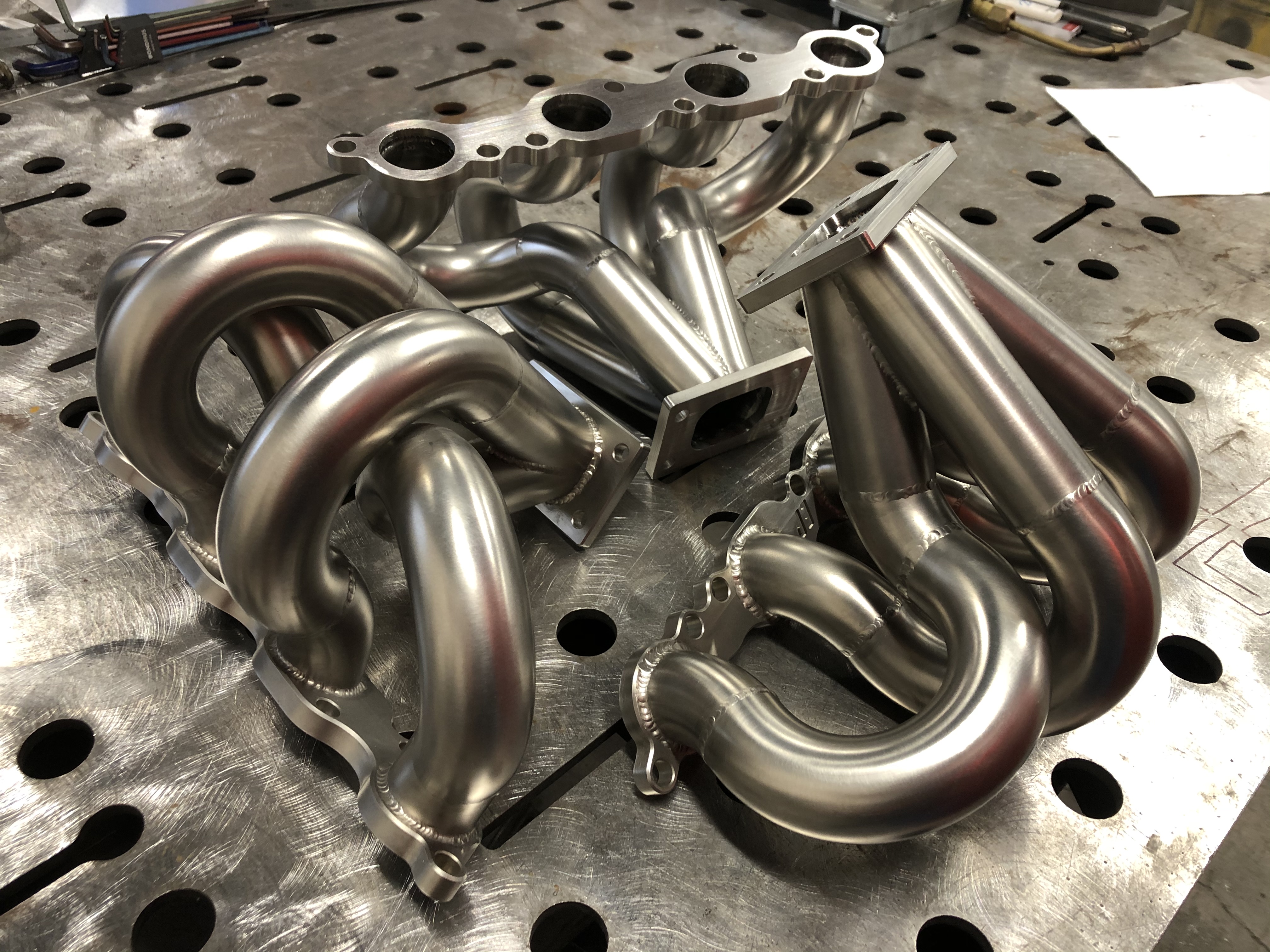 Nějaké nerezové díly, převážně žárupevná nerez, tl. 1 až 2mm. Všechny výfukové díly jsou při svařování foukány zevnitř - tzn. backpurge pro 100% kvalitu.