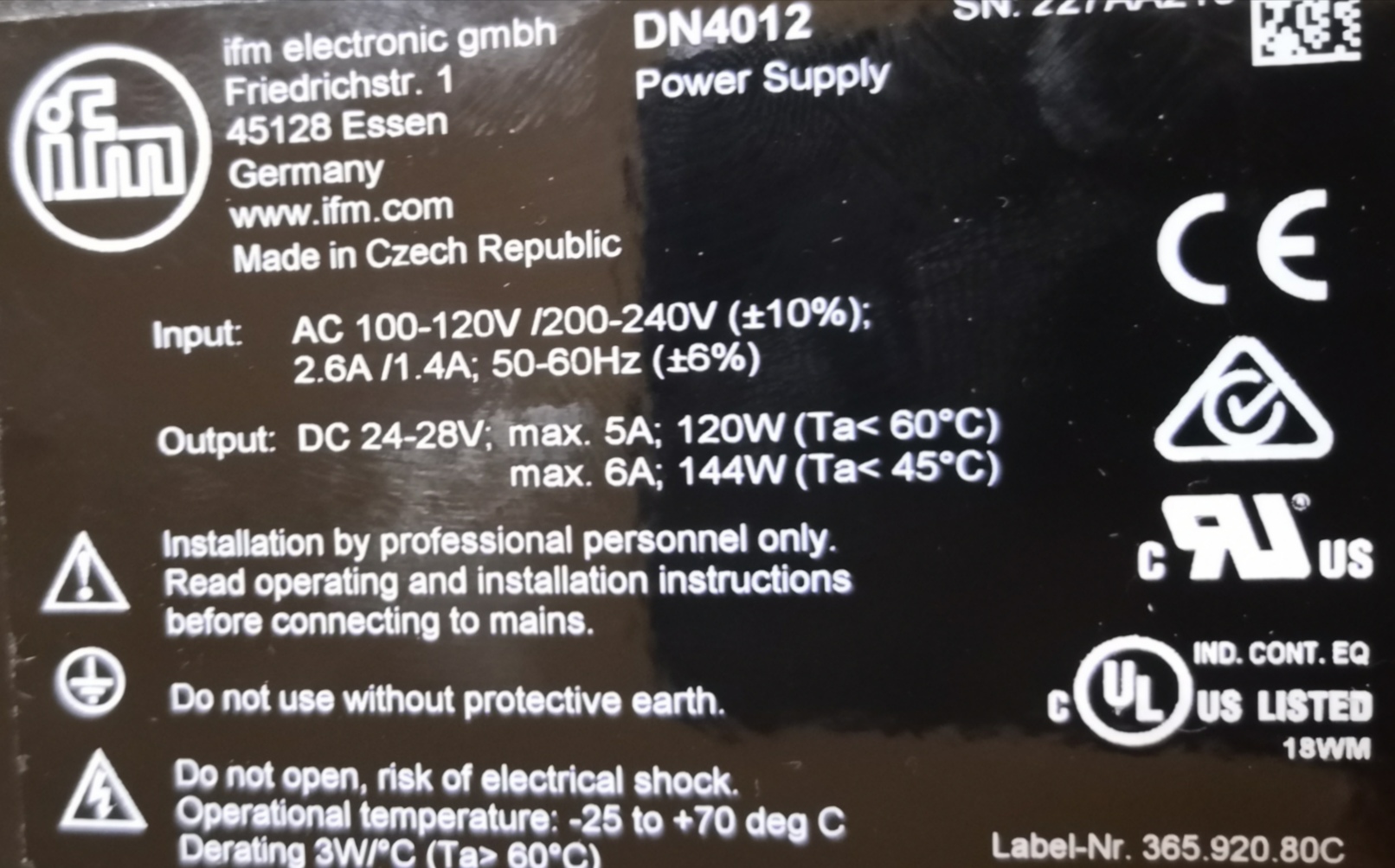 Zdroj IFM 24V, 6A nový