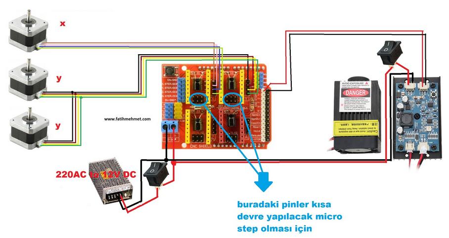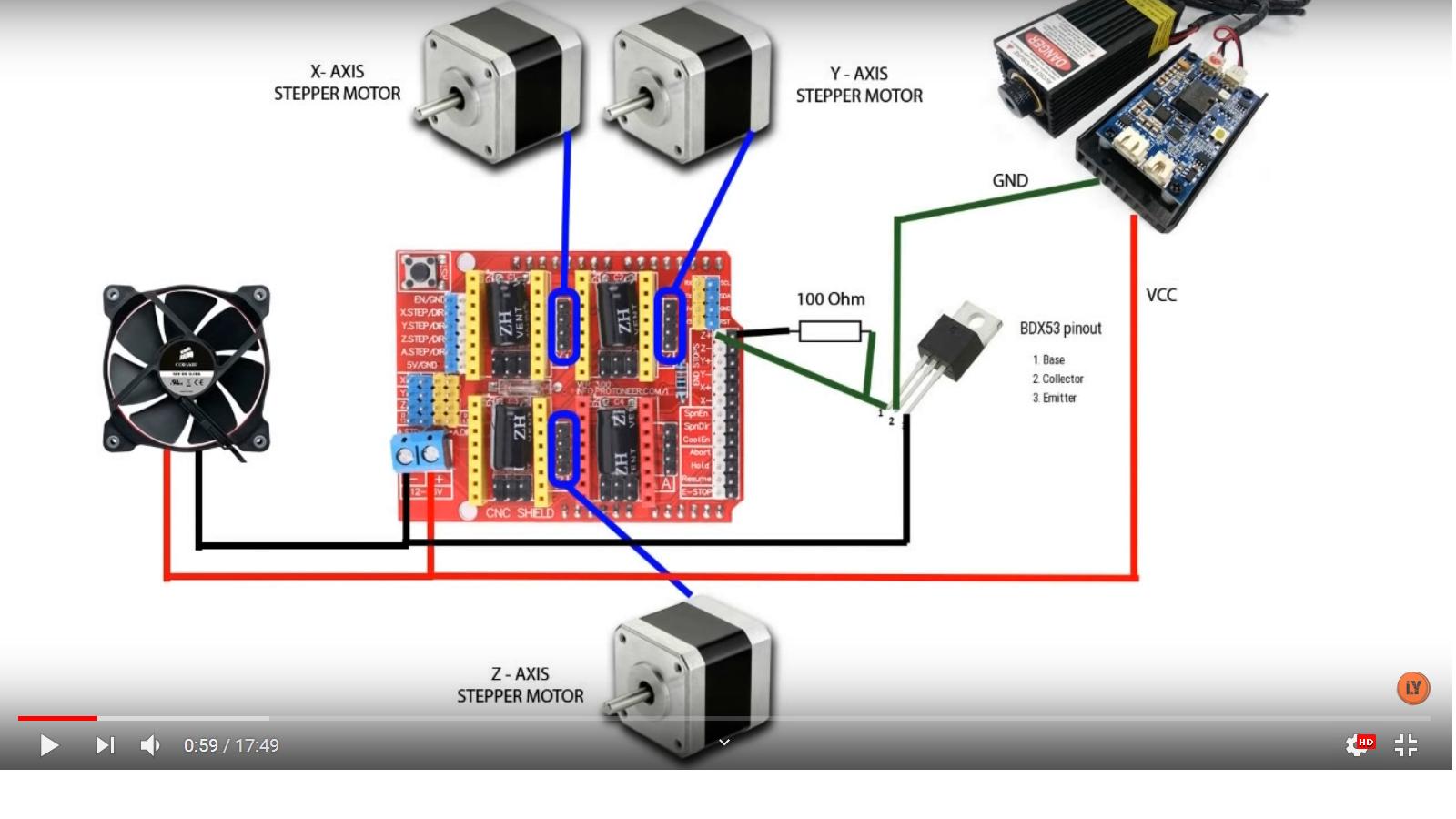 andy555 píše: 13. 12. 2019, 9:26 Ahoj Mex... no bohuzial uz sa stalo...hovori sa "neznalost zakona neomlouva"...Ale mal by som na teba este par otazok, prosim keby si mi vedel poradi, lebo mam v tom chaos trosku... Nikde som sa nedocital aka vzdialenost laserovej hlavy (cocka laseru) ma byt od obrobku a od coho to zavisi?? alebo ako sa vypocita?? Dalej ten udaj napr. 450nm je co za udaj?? ja myslim ze to je nejaka vlnova dlzka a naco ten udaj sluzi??... Dalej tie lasery su riadene vecsinou bud PWM , alebo TTL, viem co je PWM (spustu modulov PWM som postavil) aj TTL, ale neviem co je na riadcom vystupe Arduina Una+CNC shield, riadeneho frmvarom GRBL Laser?? Nikde som sa to nedozvedel...Posielam obrazok tak ako to planujem ja zapojit...Elektorinku, cize Arduino Uno+CNC shield+Firmvare GRBL Laser + DRV8825 uz mam hotovu...