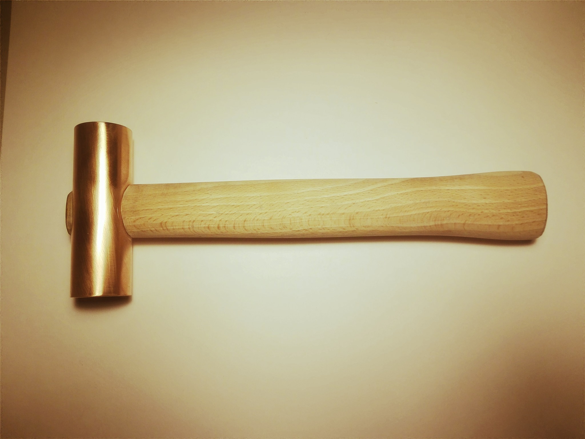 Jsem malý hobík, takže takovou fajnovost jako měděnou maličku nemám. Ale protože občas chci do nečeha trochu praštit a neponičit to, tak jsem si vyrobil dřevěnou paličku. Stačí mi to jen takhle, ale kdyby bylo třeba něco těžšího, tak by jistě nebyl problém udělat tam dutinu a strčit dovnitř třeba kus 20mm hlazenky. Je to špatně? Je ta měď nějak výrazně lepší?