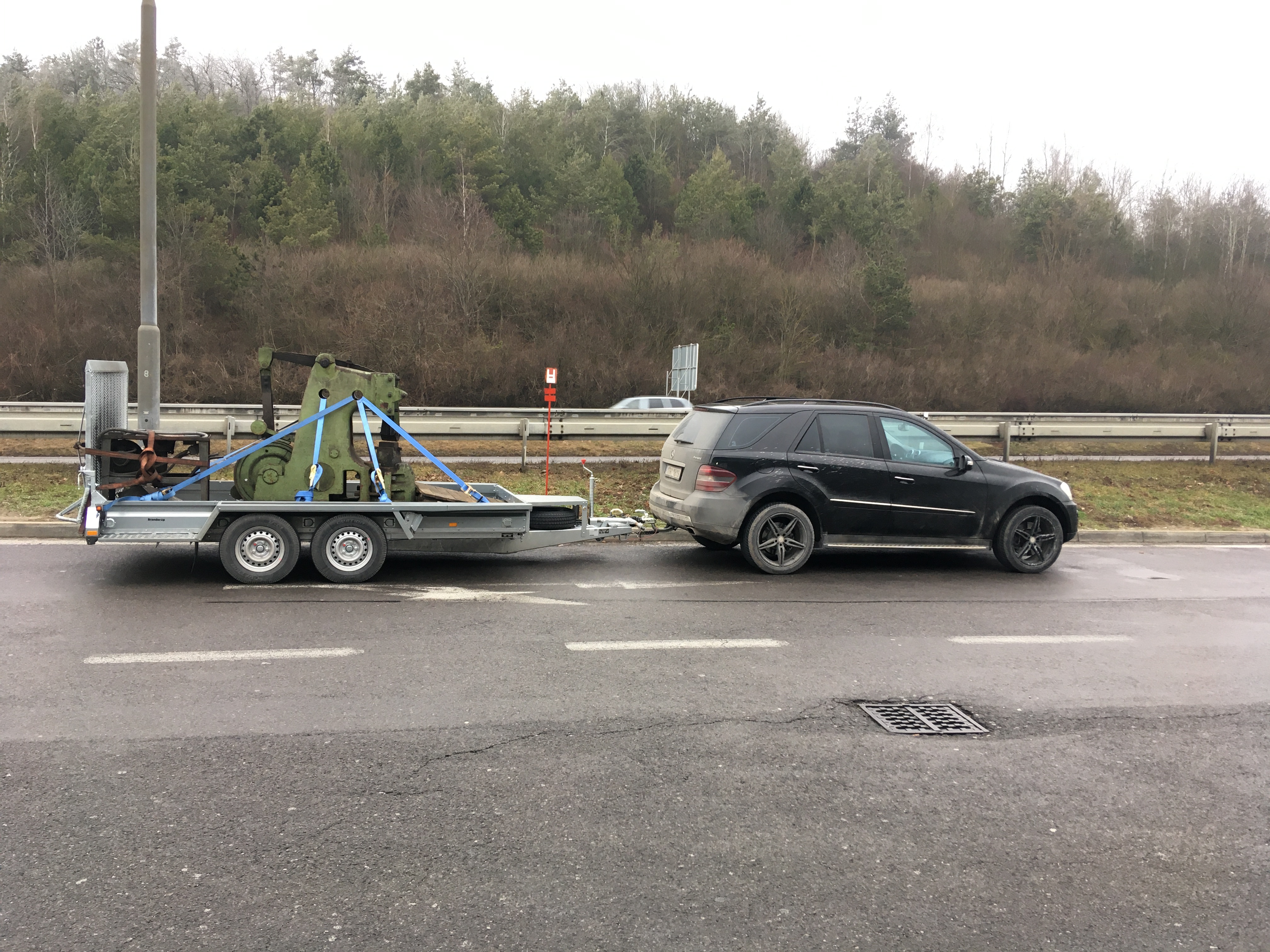 Chcem sa poďakovať Braňovi za super komunikáciu a ochotu (i keď buchar nebol priamo pre mňa...). Prevoz dopadol na výbornu :) aj napriek mojim menším obavám ohľadom ťažiska...(vodičák BE bol ešte čerstvý :mrgreen: ) Braňo nám to perfektne zgurtňoval a ten veľký vozík s celkovou hmotnosťou 3500kg nemal s bucharom o hmotnosti 2t žiadny problém či už išlo o stabilitu, nosnosť alebo brzdenie :) Pre lepšiu predstavu pridávam foto z prepravy. Samozrejme, že auto mohlo ťahať 3500kg.