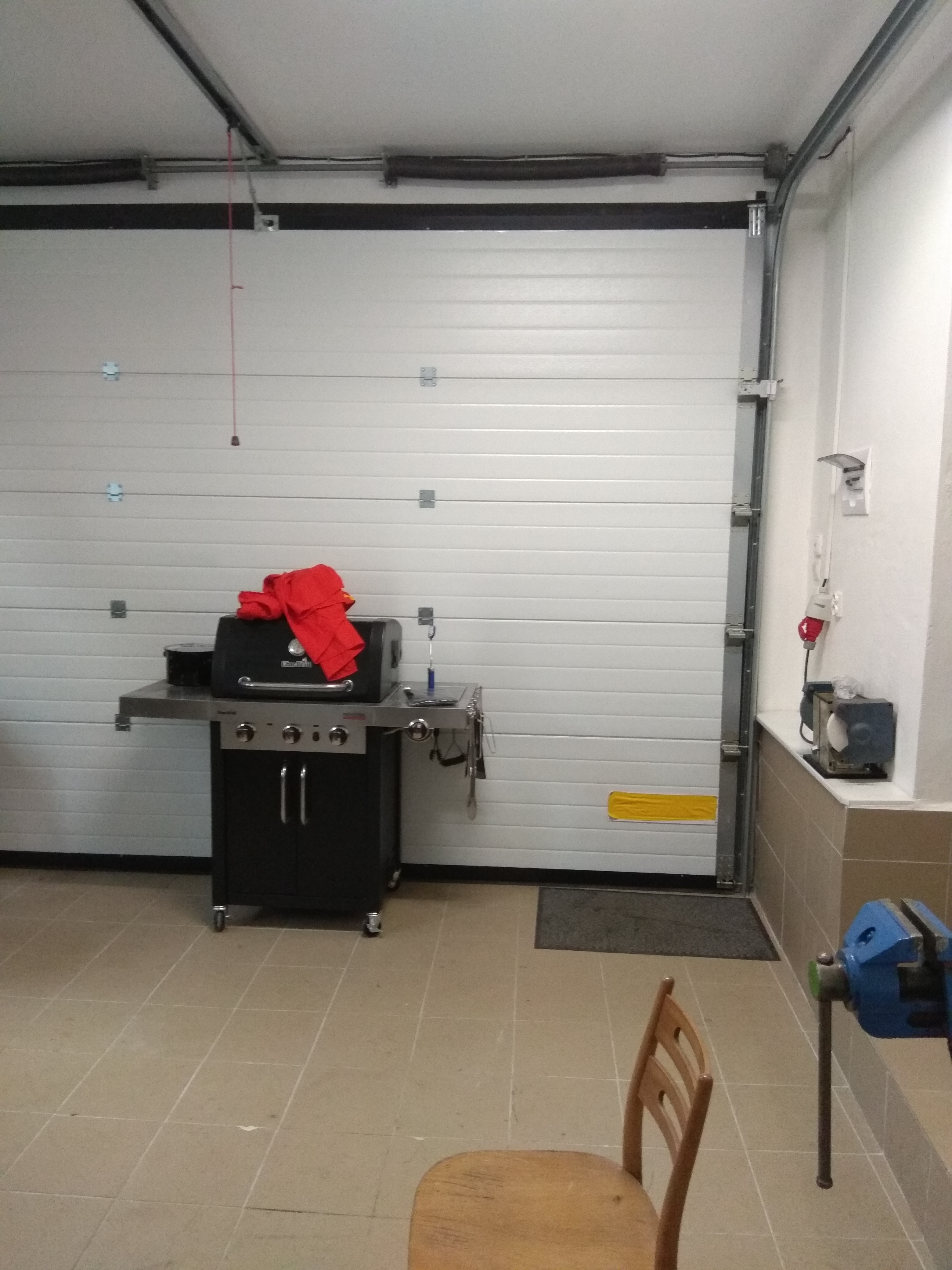 Přemýšlím o nějakém závěsu na zimu ale jsem zase omezen těmi vraty jelikož se zasouvaji pod strop takže lano na závěs by bylo ca 50cm od stropu což taky není ideální.