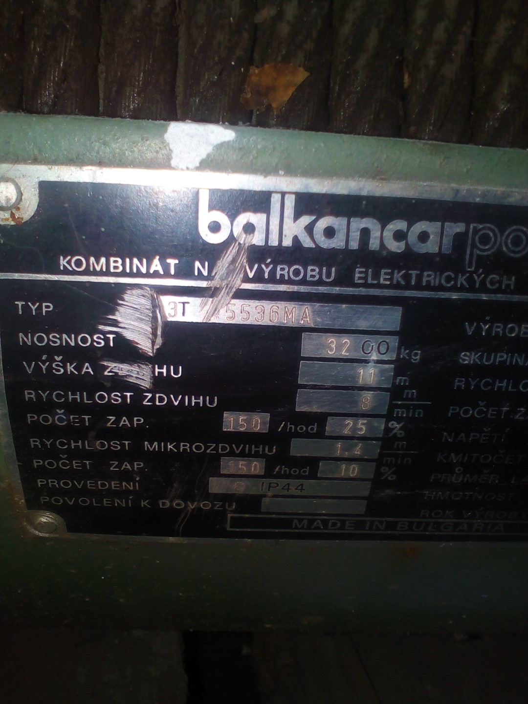 Jeřábový zvedák Balkancar 3,2 t s pojezdem - NOVÝ