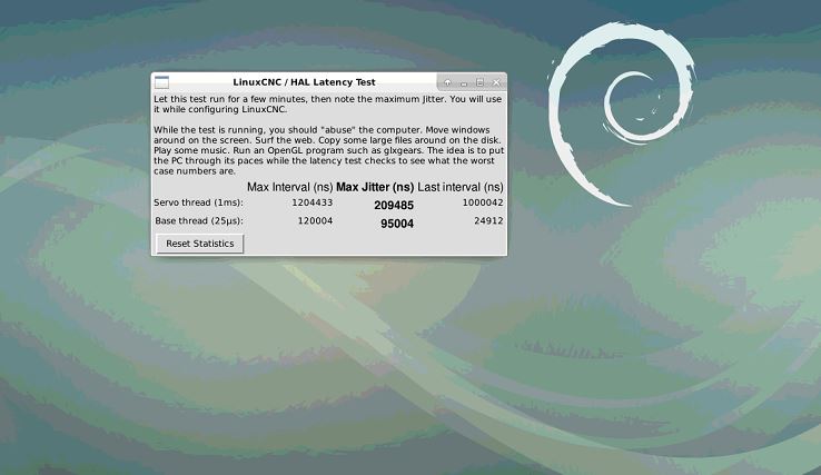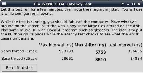 Na stejném HW u mě stará distribuční verze LinuxCNC 2.7.15 má jitter 7000/6000ns, při opravdu brutální zátěži pak 7600/8600nm (první číslo je vždy Servo thread, za lomítkem Base thread).