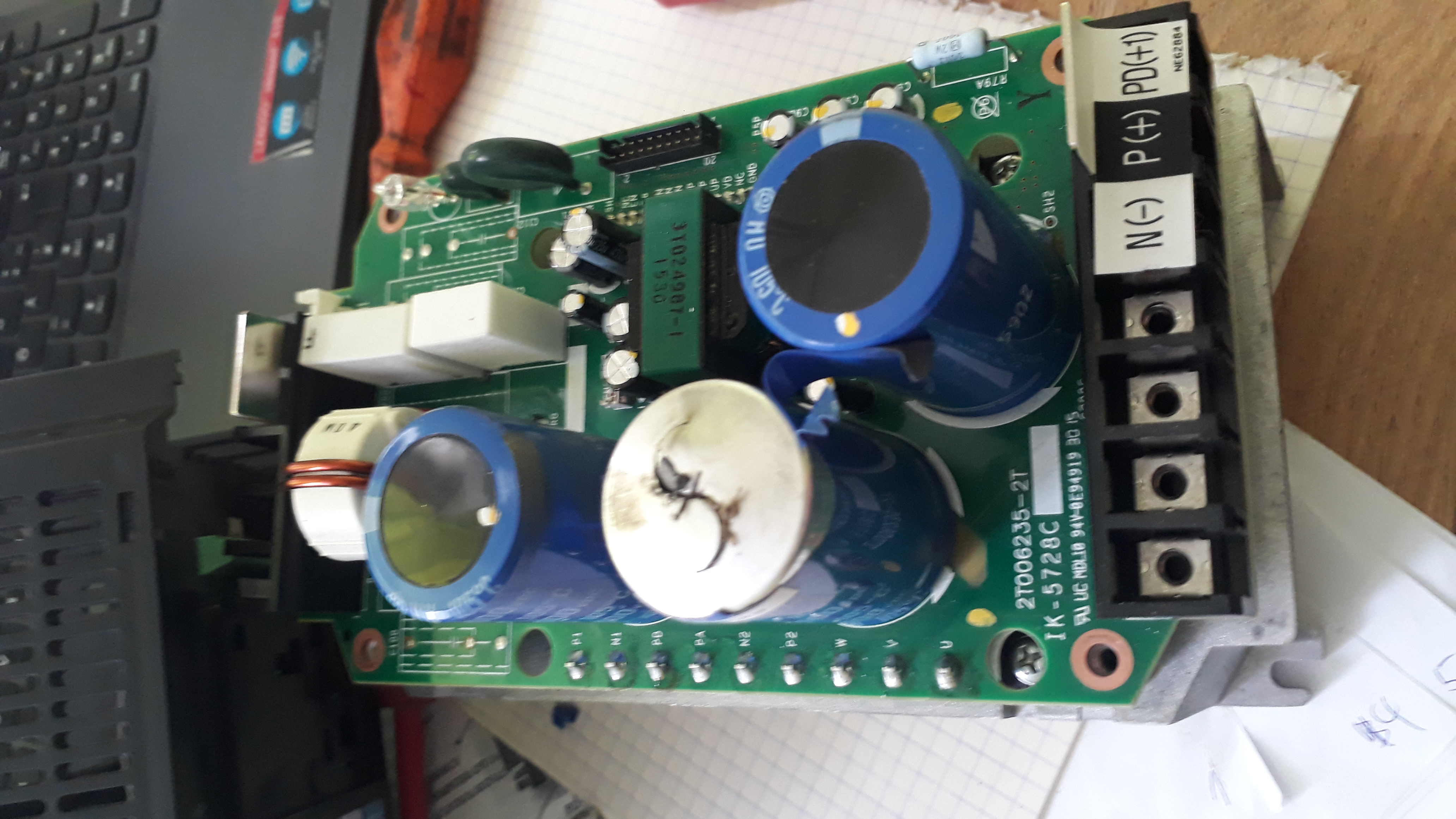 Keď je to japonský menič na 3f 220V, tak je hádam jasné, prečo kondenzátor neprežil našich 3f 400V, vekom to určite nebude.