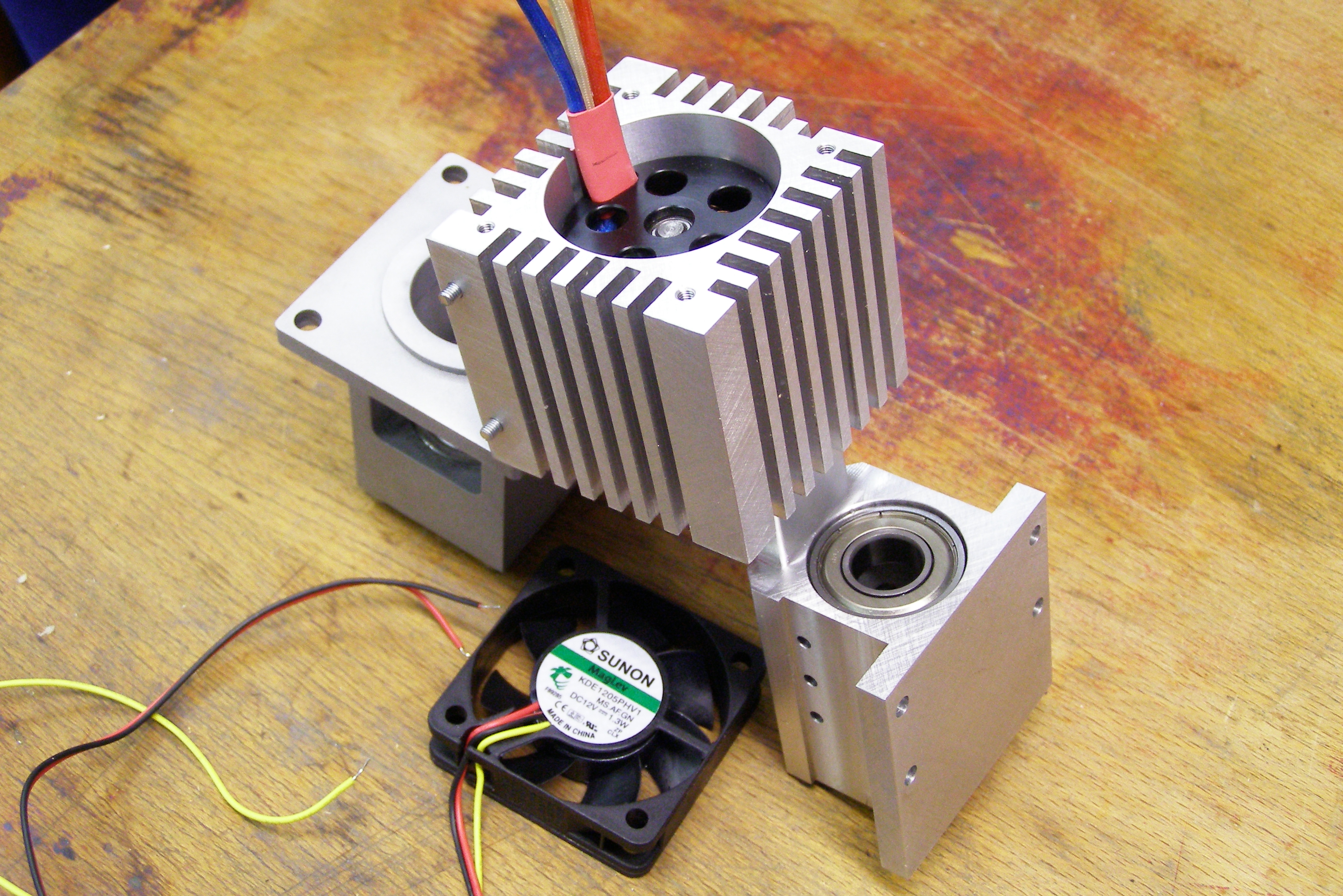 To foto polotovaru vřetene je staršího data, je ještě bez ložisek, protože jsem si říkal, že otvory pro ložiska udělám, až podle dříku kleštinového upínače, ted' tam jsou nalisované ložiska R8 ZZ - 3ks, vřeteno je určené pouze k frézování překližky, proto se použije vysokootáčkový motor MEGA