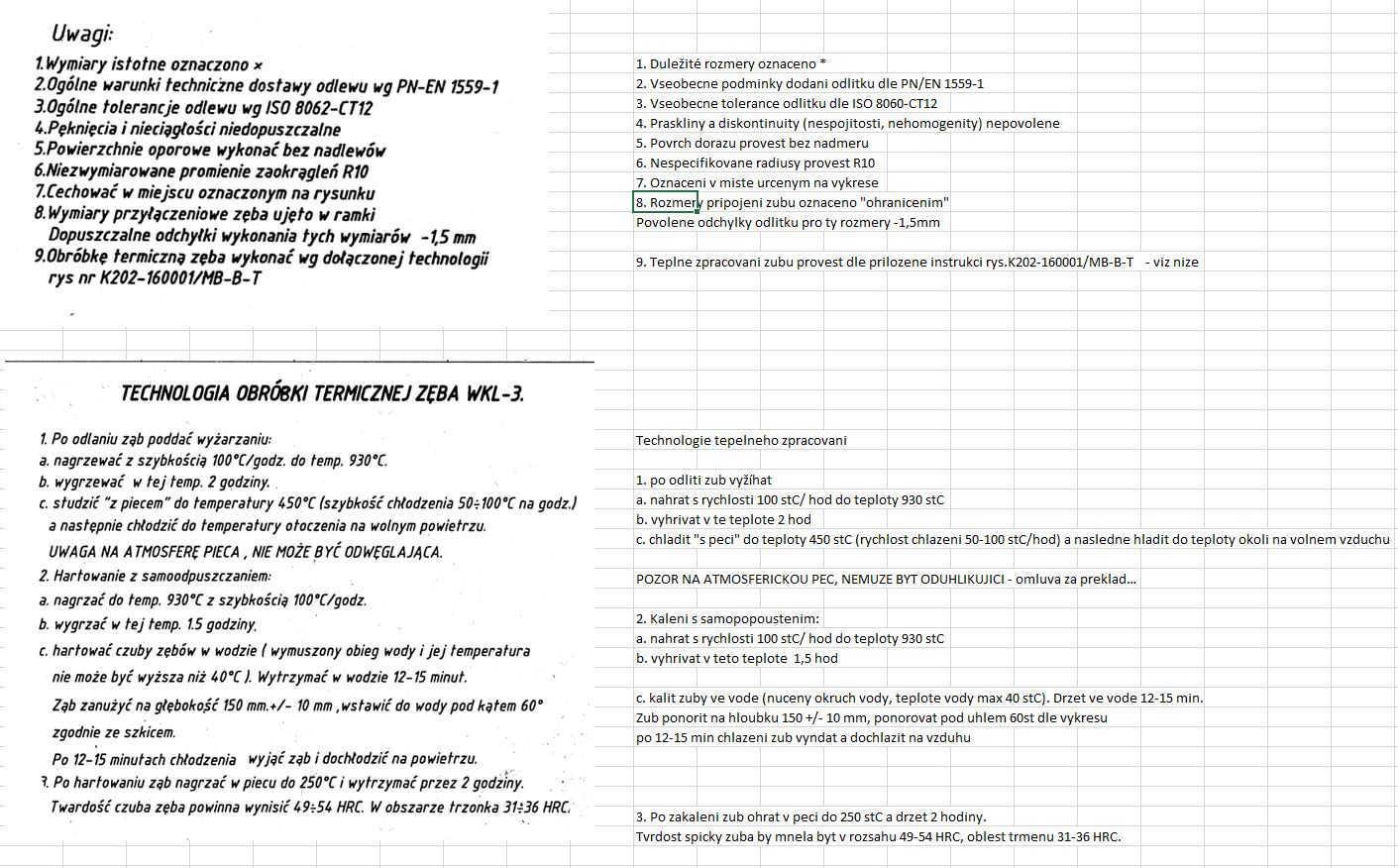 V zip souboru je tif soubor s výkresem odlitku a tepelného zpracovaní, excel s překladem, 2x pdf s 3D náhledem a 3D model ve stepu
