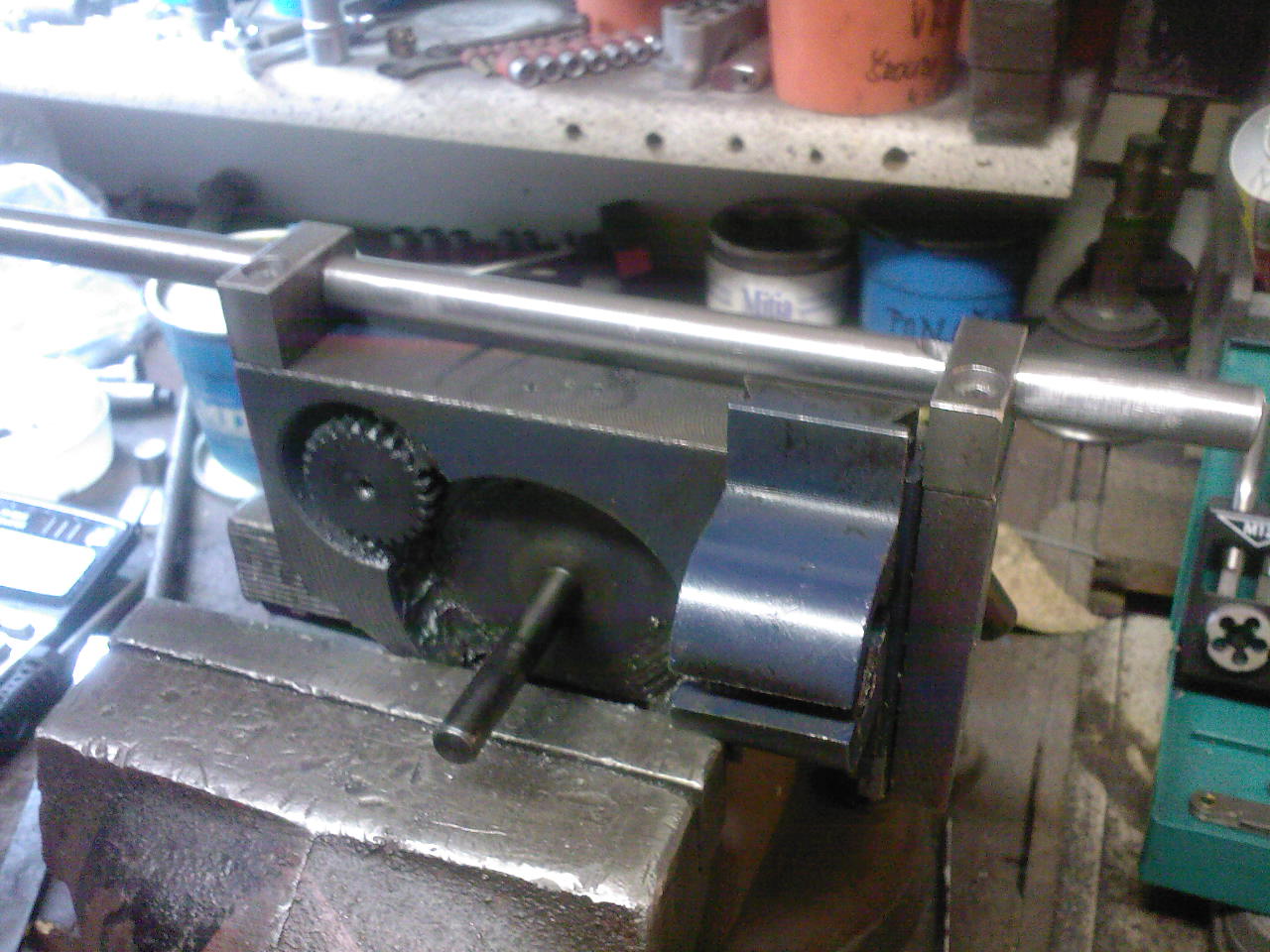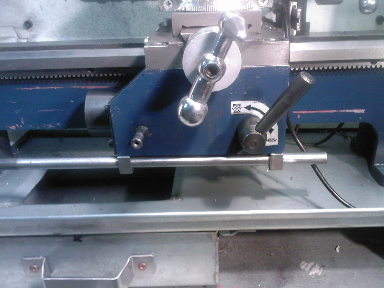 princip je stejnej jako na momentové závitové hlavě,po dorazu na pevný doraz na saních by tažný šroub přeskakoval v tom forichtungu přes kuličky tlačené pružinama a tlakem pružin na kuličky by se dal ten moment štelovat podle třísky,no ale pak jsem se na to vydlábl,musel bych přeříznout ten šroub a ten soustruh má pro mě spíš historickou hodnotu jak funkční