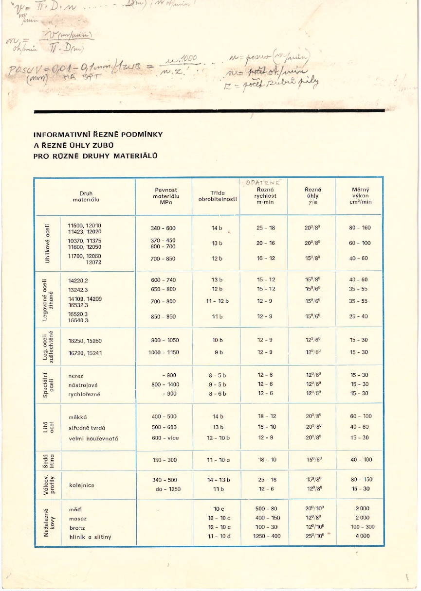Většinou platí, že doporučené řezné rychlosti je třeba dělit tak min. dvěma - třemi.