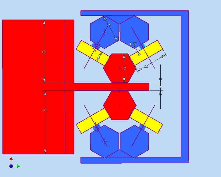 Pohrávam sa z myšlienkou spraviť lineárne vedenie zo šesťhranu. Príklad na obrázku. Prepáčte ako vyzerá neviem to lepšie. Červená je základňa napr na portálke, modrá je posúvajúce sa rameno na žltých ložiskách.
