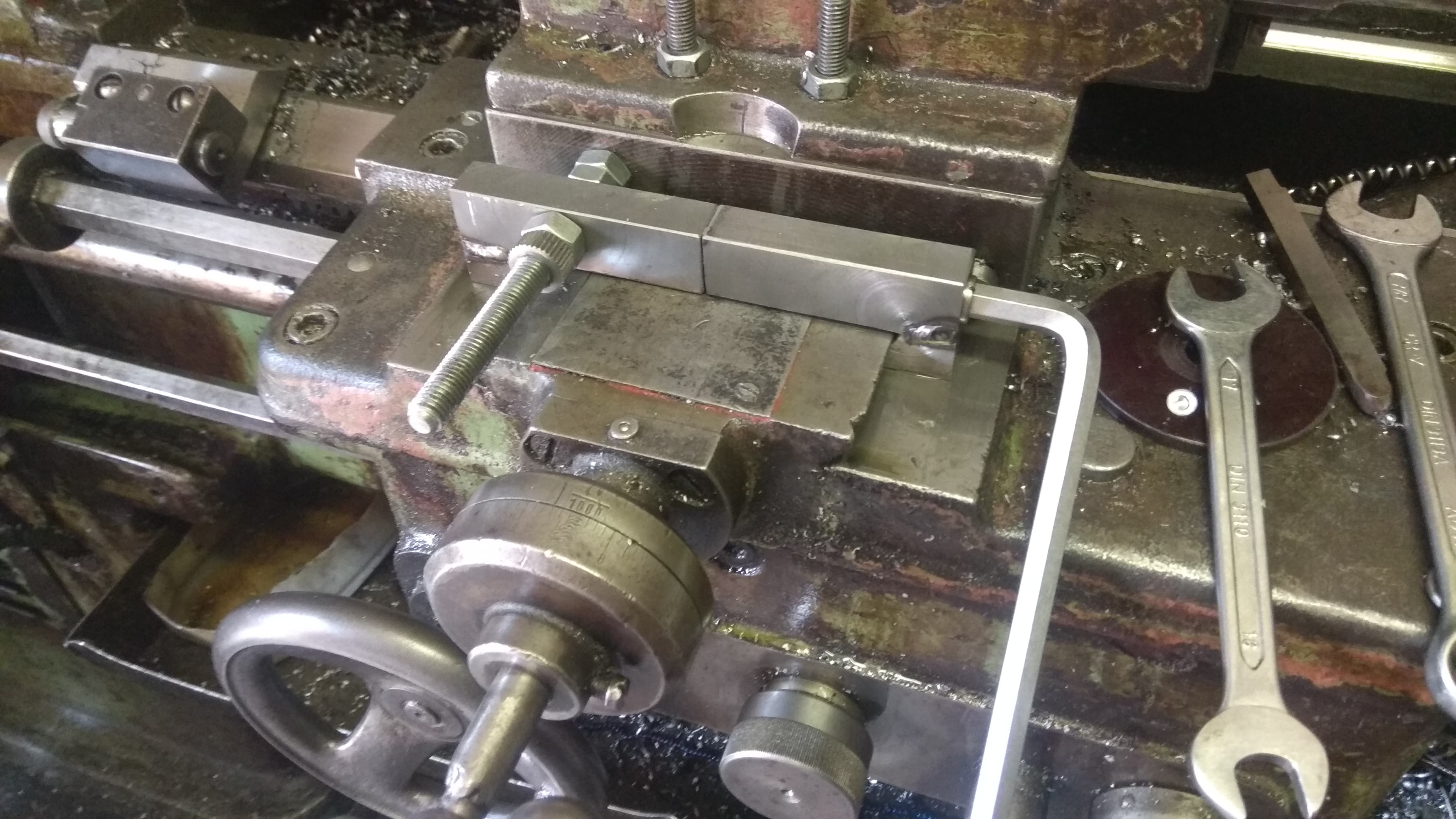 Nakoniec som to vyriešil takto, keď sú matice vľavo pritiahnuté, tak to funguje ako zámok suportu, po nastavení tých matíc sa to dá použiť ako doraz. "Frézované" v sústruhu, takže vzhľad nič moc, ale funguje to dobre, stačí zľahka pritiahnuť imbus a suportom sa nedá pohnúť. Mal by som si konečne kúpiť frézku
