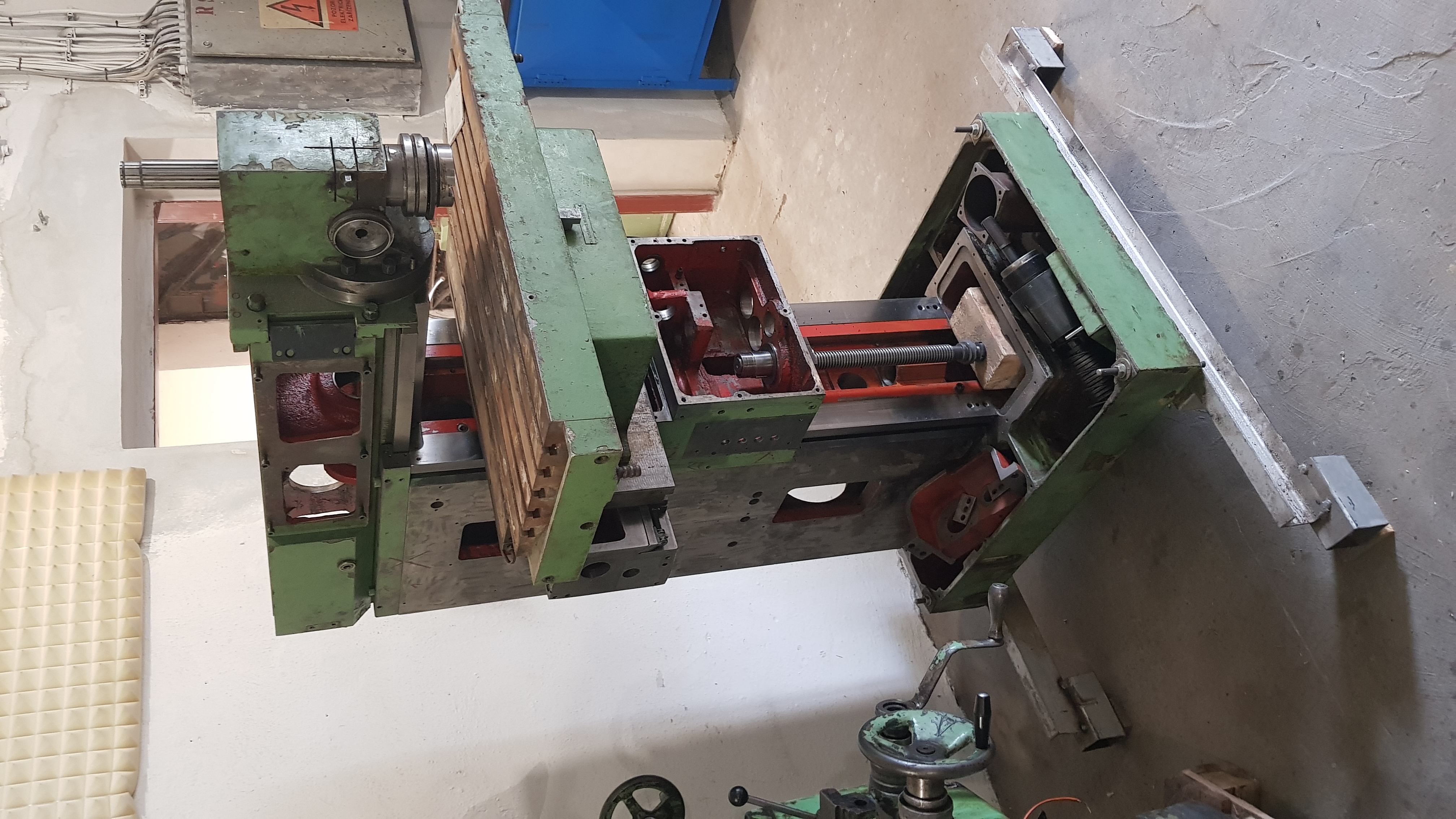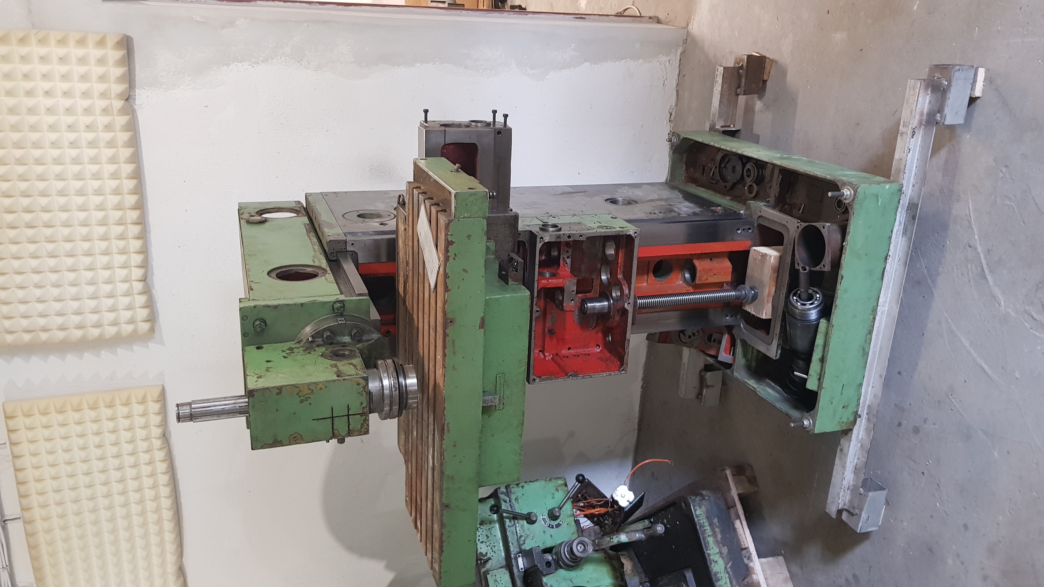 Tím že jsem to rozebral alespoň případný kupující uvidí v jakém stavu jsou ty nejdůležitější části stroje a muže se rozhodnout a proměřit jak co udělá než to koupí. Samozřejmě je to časově finančně a náročné ale je to zuhlovanej přesnej základ s vřetenem iso40 a mazacími kanály ( je tam i tlakový čerpadlo na olej ale původně sloužilo primárně k uvolnění upínače nástrojů a uzamykání jednotlivých os) navíc se tam nekladou meze představivosti jelikož je tam i vertikální vřeteno a nebo se dá oddělat upínací stůl a místo něj třeba udělat 4 a 5 osu v podobě kolébky. Je k tomu původní mechanika ale myslím že jediné co má cenu zachovat je matice a šroub na osu Z. Když jsem stroj kupoval tak už jsem nepočítal s tím že by to běželo v původním stavu. Hadice pravítka a td. byly po smrti . Bylo to řízeno jedním motorem a soustavou hřídelí a spojek.