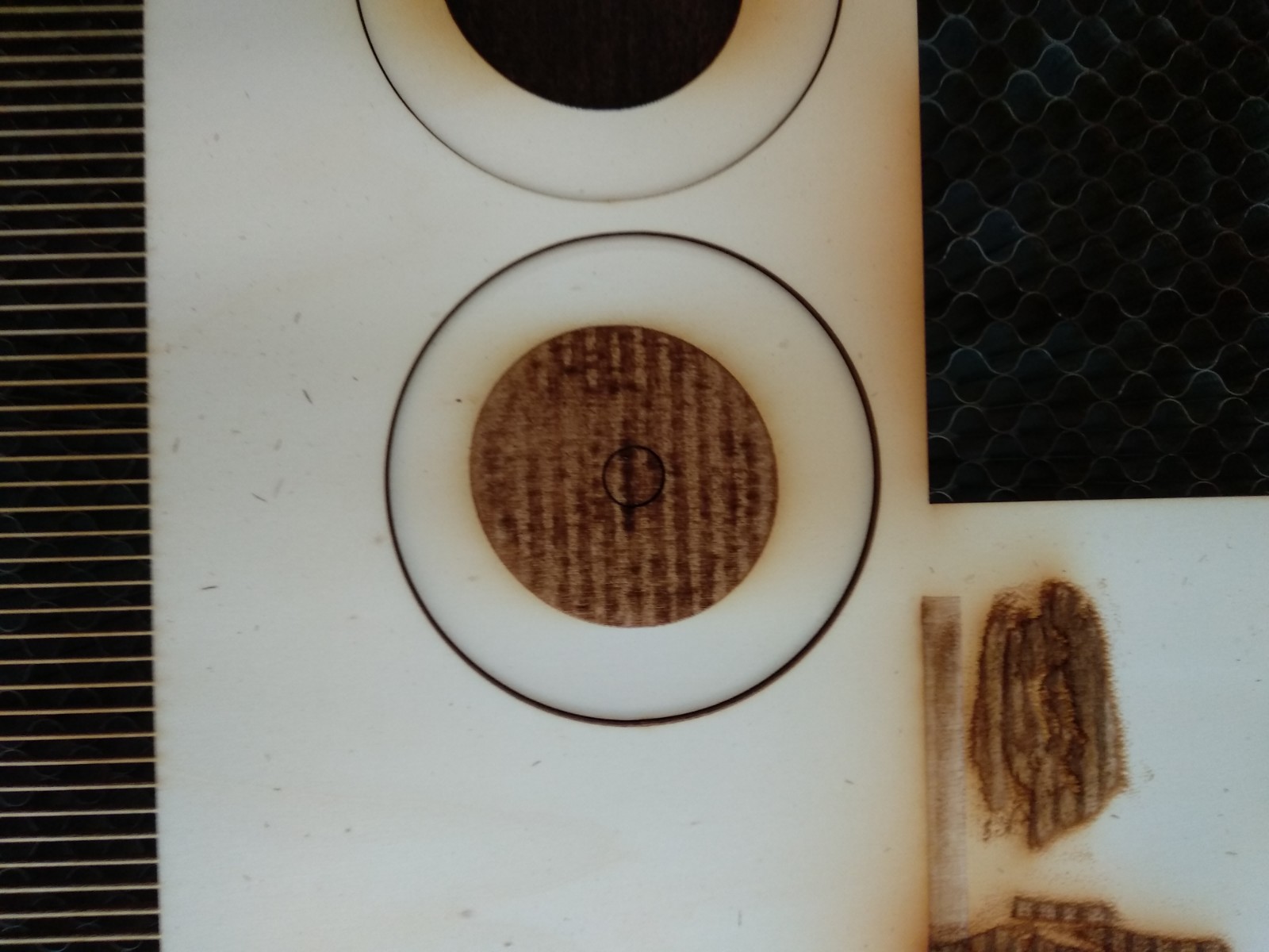trošku bojuji se svým laserem z Číny. Hlavní problém je skrze gravírování a jeho umístění dle programu, ani gravírovaní není souměrné. Dělal jsem pokus gravírování v rámci osy X a Y v různých rychlostech, problém setrvává u obou os i u všech rychlostí. Tento problém je pouze u gravírování, u samotného řezání to není. U řezu je vše absolutním pořádku, u řezaní kruhu o průměru 90 je finální výsledek velmi uspokojivý. Naměřené hodnoty byly maximálně o 0,3mm do mínusu. Což považuji za velmi dobré u takového stroje. U čtverců jsou pravé úhly, takže taky dobrý. Jen jediná vada na kráse je to gravírování.