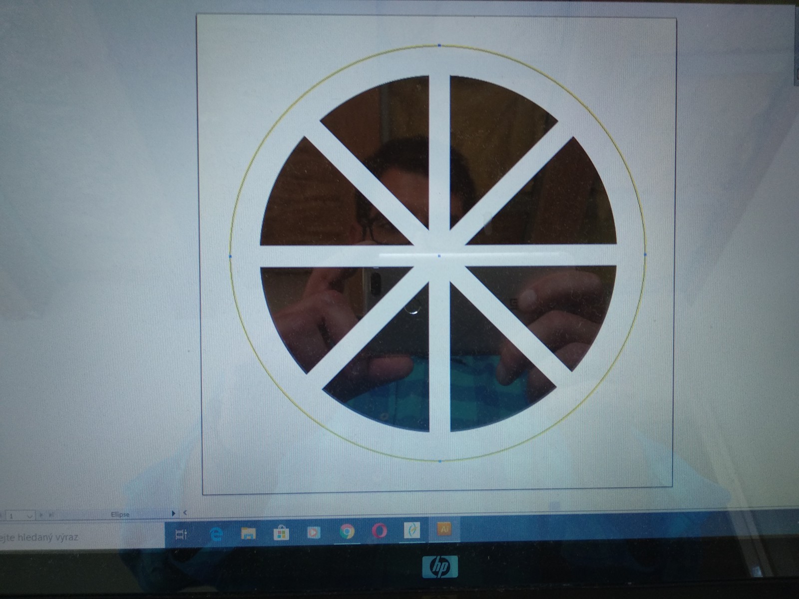 Druhá kružnice o průměru 50 mm na střed (gravírování), absolutně mimo středovou osu a ani to není kružnice.