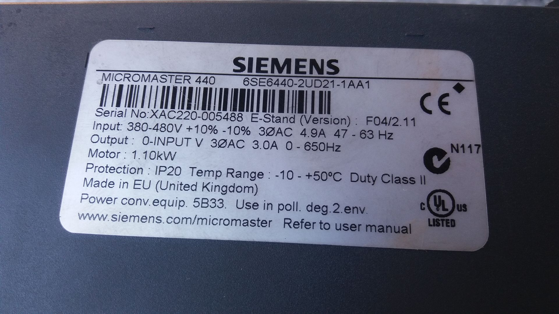 Predám frekvenčný menič Siemens Micromaster 440 1,1kW. Input 400V. Cena 60€.