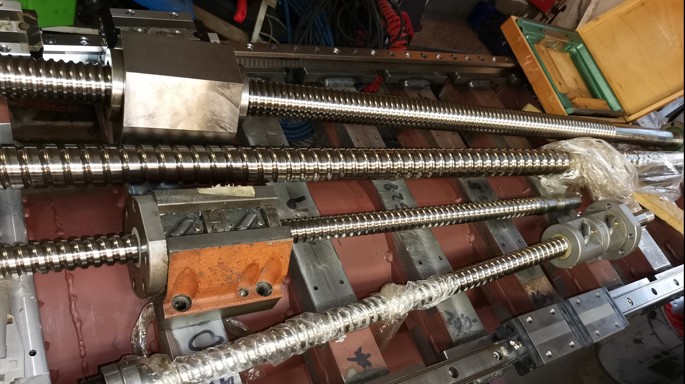 1.) nový šroub 50/stoupání 10mm, C1, pojezd jen 1210mm /celková délka 1780 (v tomto případě nevyužiji celou dráhu základny, ale je to zaručená kvalita, na matici je domek a 8,5Nm motor si s tím poradí)