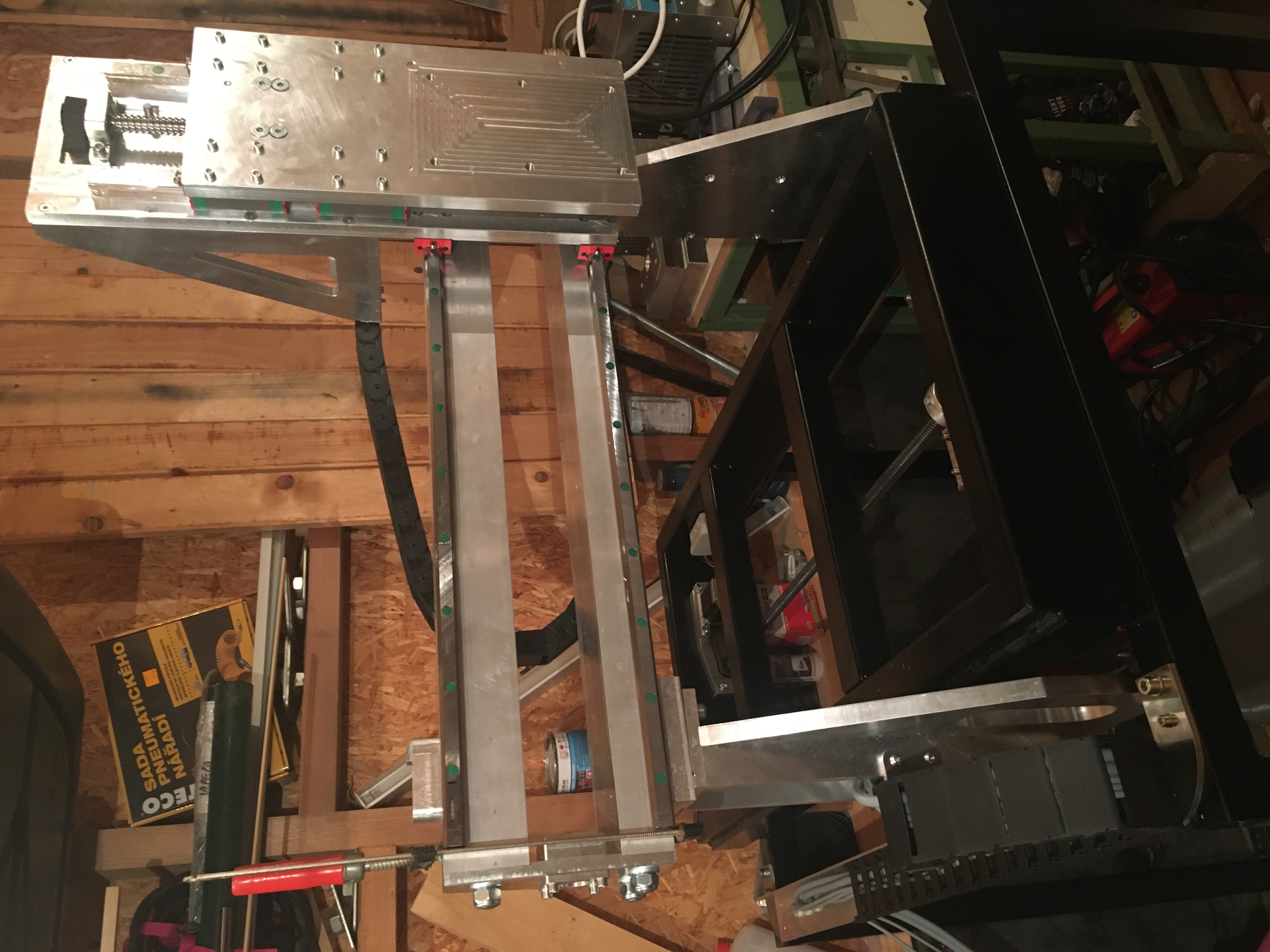 Doplnění: osa X dokončena, trapéz 16x4mm, krokový motor microcon sx23 2727 přes klínový řemen. Doplněno o drivery, arduino uno, průmyslový zdroj 36V 10A a kompletní pc. Rozpohybováno přes estlcam. Cena za komplet 20000kč.