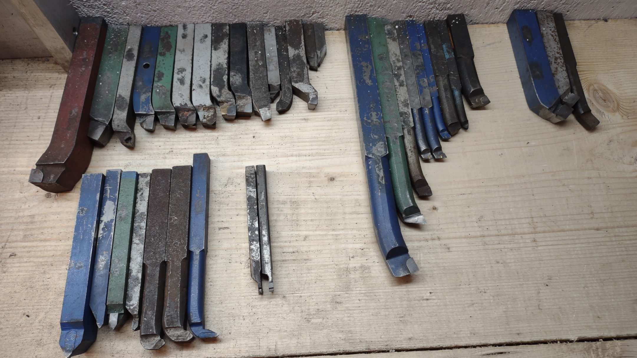 Jak jsem koupil ten soustruh tak k tomu byla hromada nozu, trochu jsem to prebral a treba noze na zavity potrebovat nebudu, nechal jsem si podobnou hromadku ale beztak mam noze s platky.