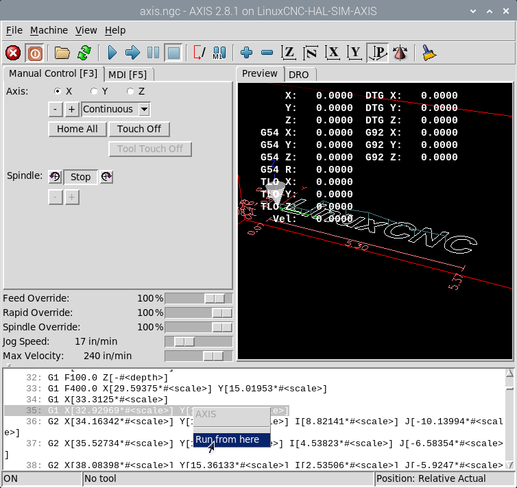 tak jsem přešel z Axis na Gmoccapy. Gmoccapy vypadá opravdu lépe, ovšem chybí mi tady možnost spustit program někde od prostřed, tak jak to šlo v Axis.