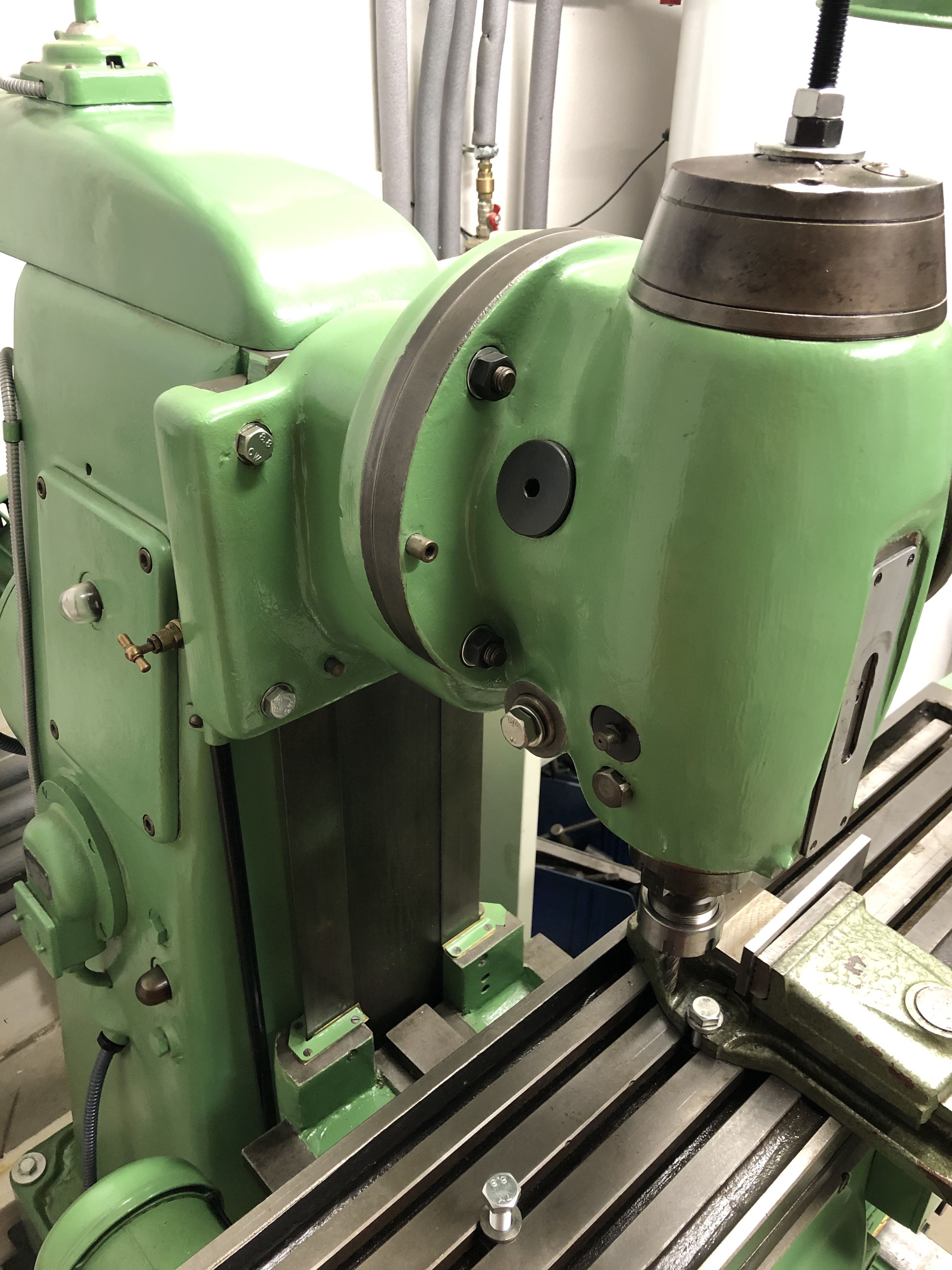 JLo ma požiadal o fotky hlavy z maďarskej frézy ME 250. Má výsuvnú pinolu, ISO30 a pasuje na fa2u. Potrebné bolo iba upraviť (zmenšiť) prítlačné rybiny na dotiahnutie hlavy k zvislej rybine. Potrebujem ešte vyrobiť vťahovaciu skrutku a držiak odchýlkomera. Snáď ani nemusím hovoriť aký "upgrade" to je.