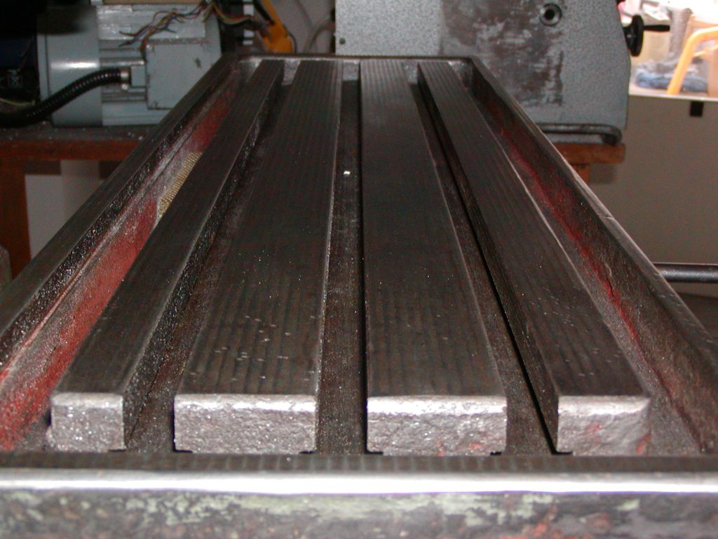 Uvažuju, že bych si nechal přebrousit stůl své frézky FH32. Není poškozený, ale asi byl už někdy srovnávaný (frézovaný nebo hoblovaný, moc se v tom nevyznám) a problém je, že jsou na něm takové proužky, které vystupují o cca 3 setiny, viz foto. To mi dělá problémy při přímém uputí obrobku na stůl - vystouplé "valy" se do obrobku obtisknou. Prosím poraďte, co s tím, případně prosím o nabídku výpomoci. Rozměry stolu jsou 900 x 250 mm, váha cca 100 kg. Jsem z okolí Brna. Díky