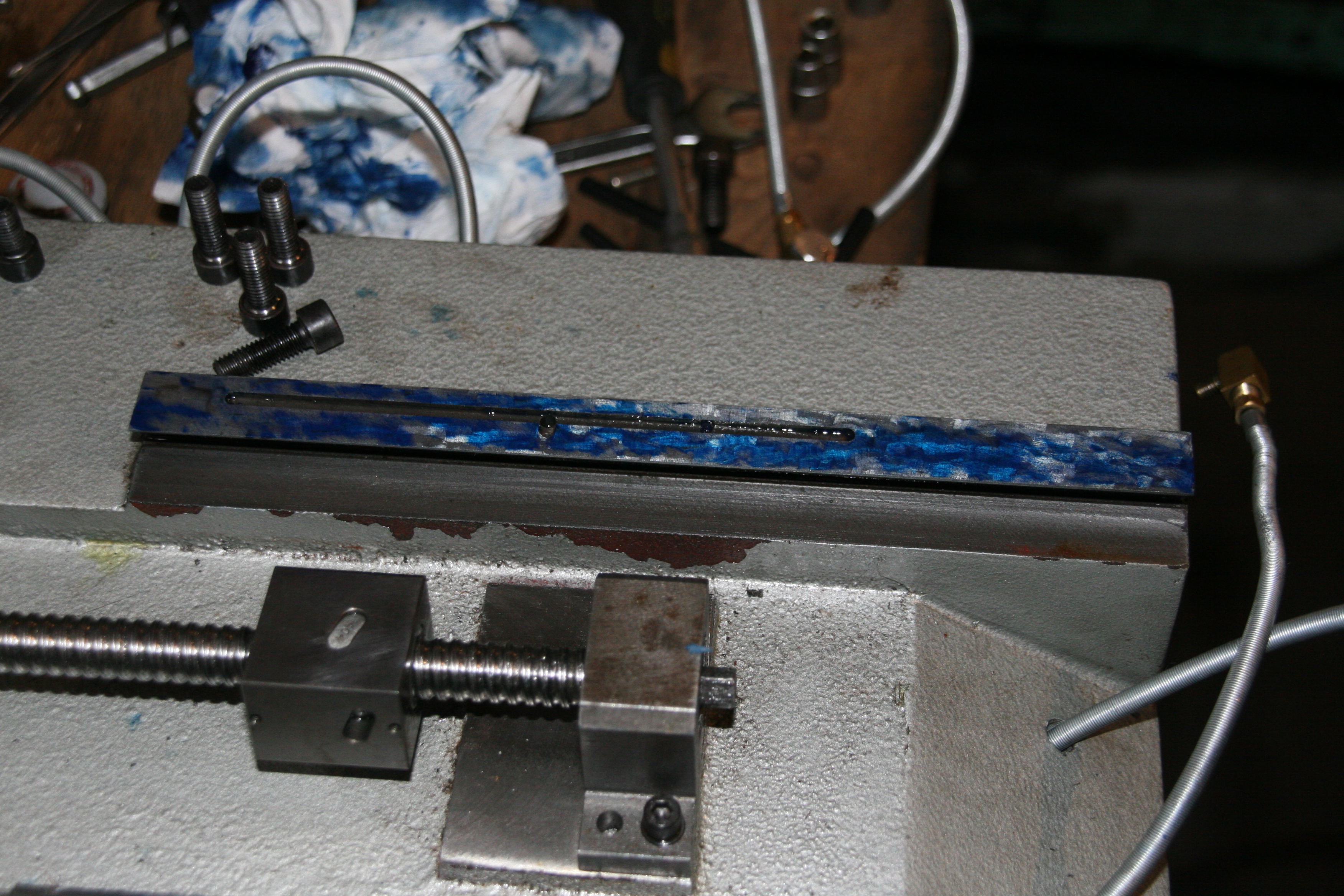 z krizove casti vedeni stolu je treba demontovat trubicky mazani sroubu (viz photo022) a jejich otvory zaslepit