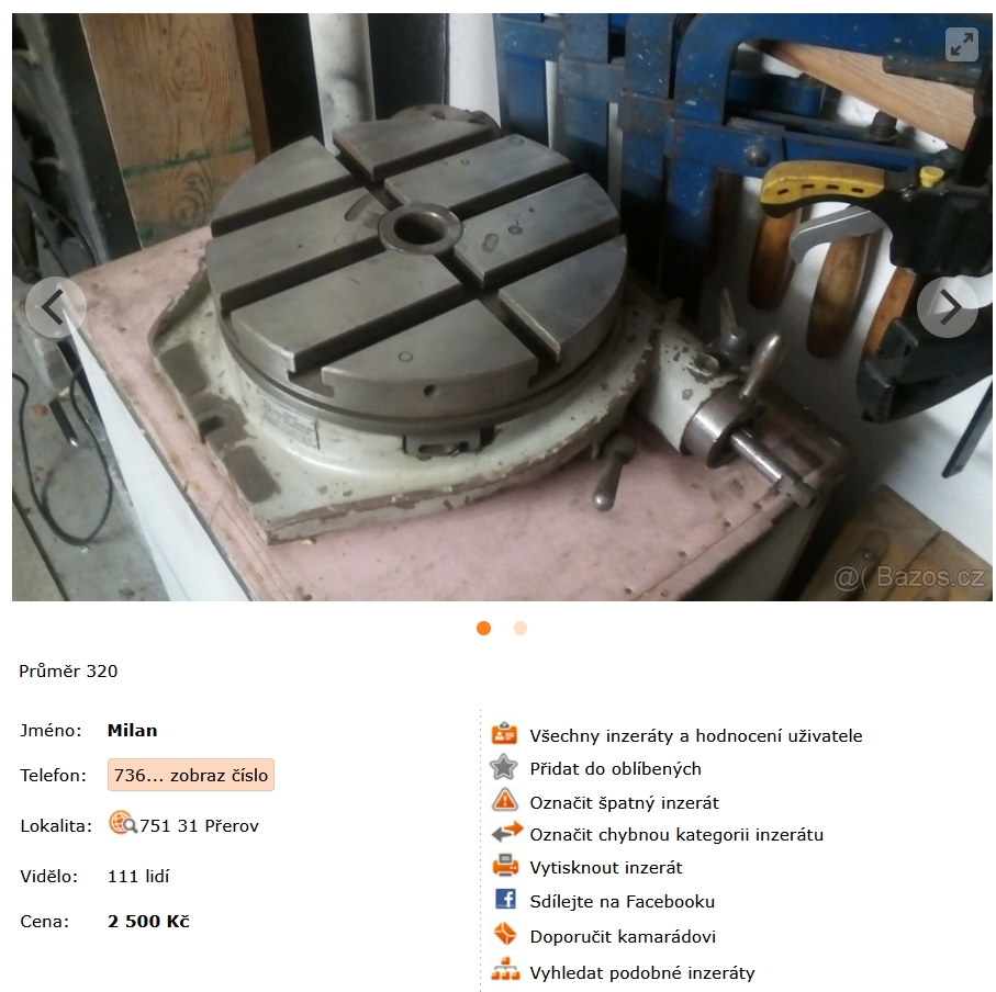 Otočný stůl 320mm - 2500,-Kč