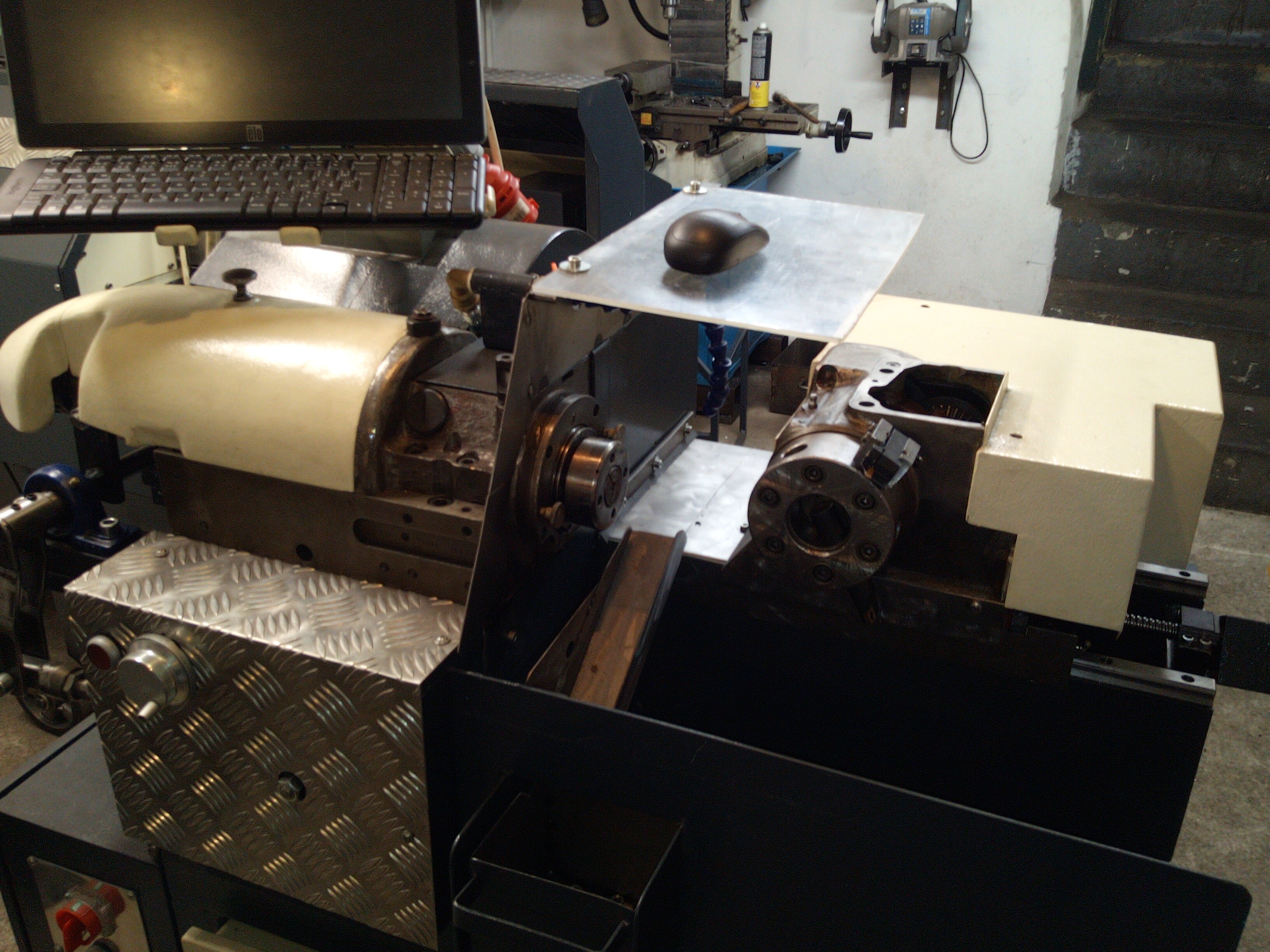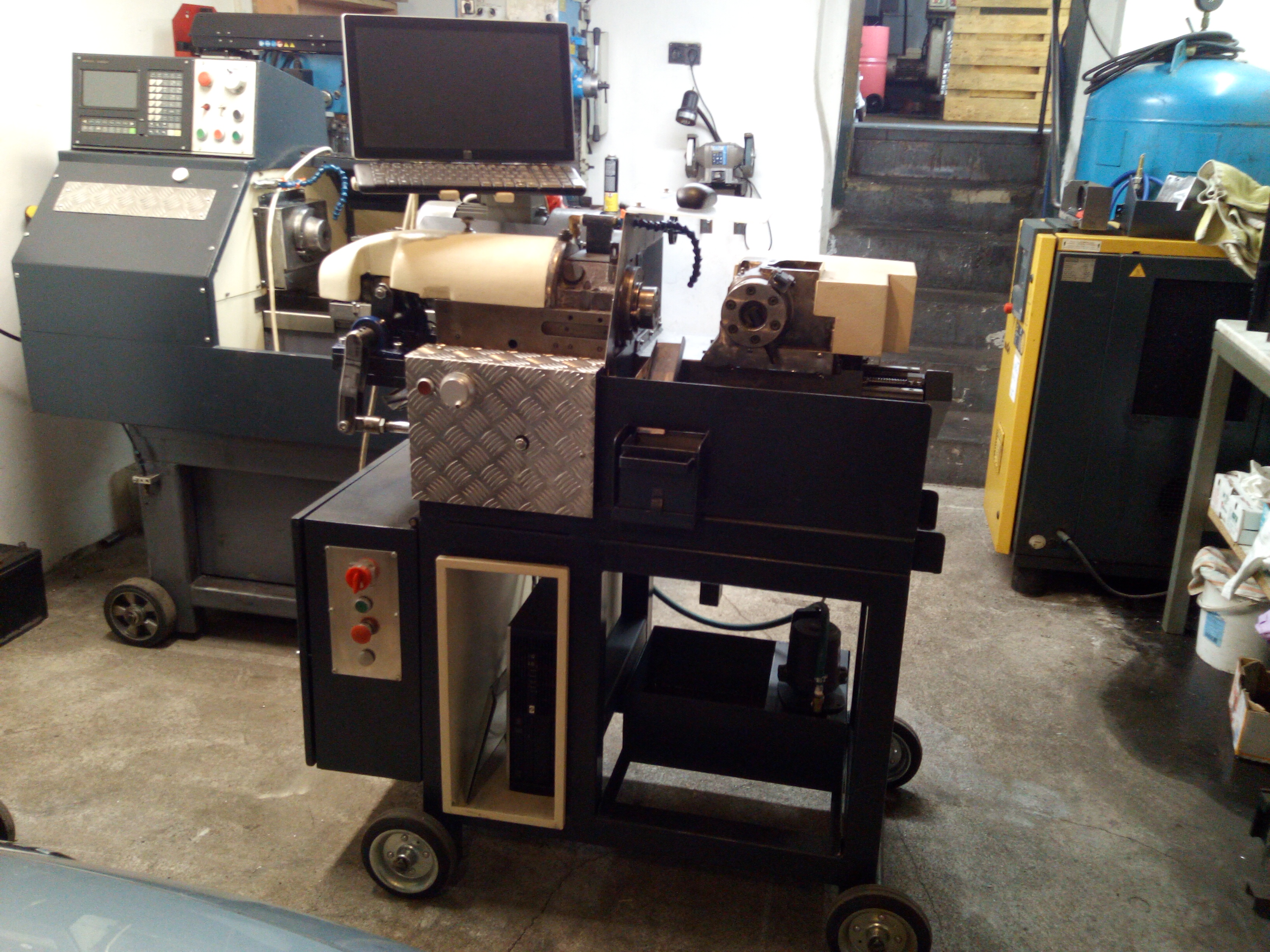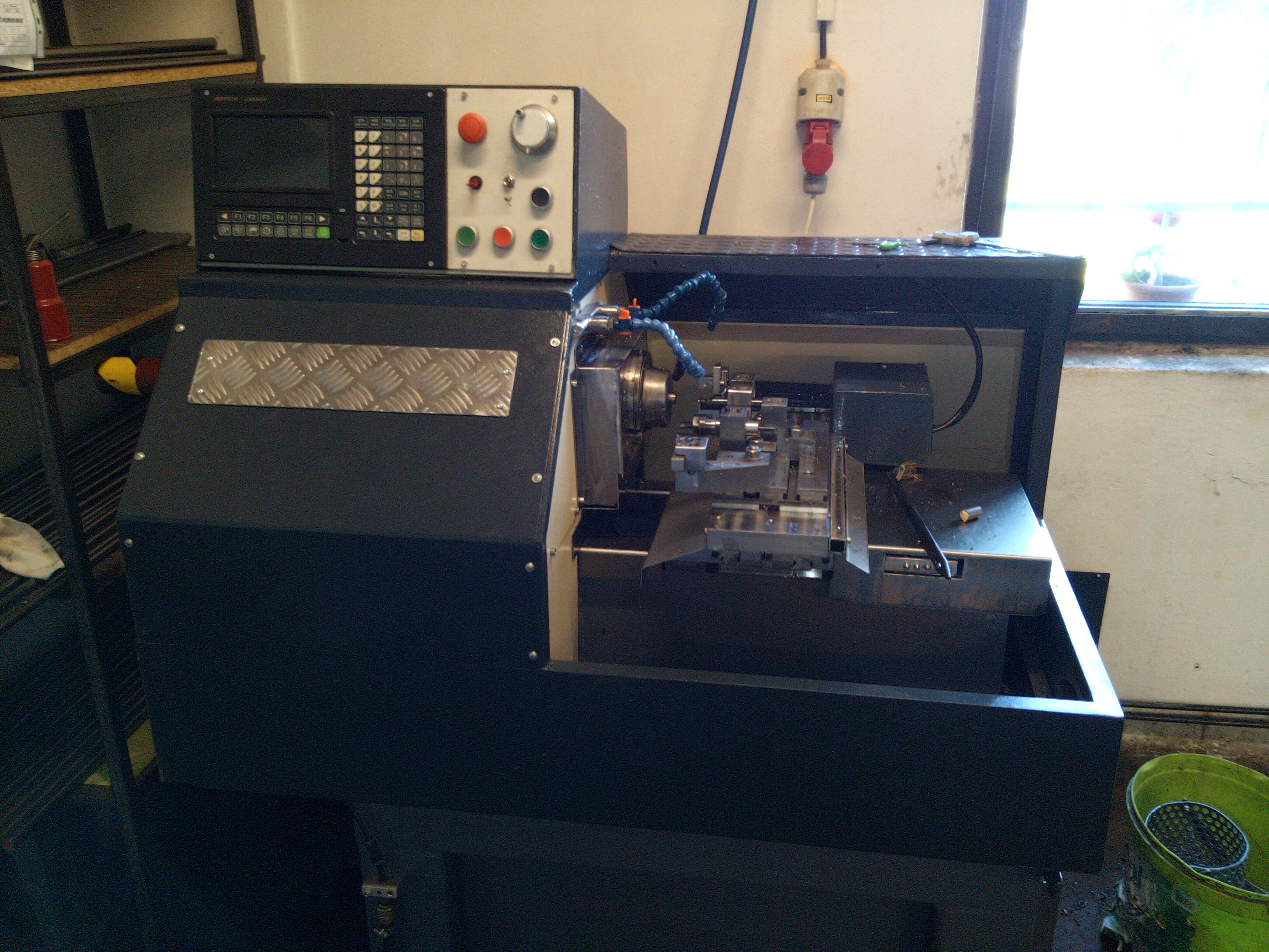 Prodám CNC soustruh domácí výroby. Vřeteno je ze soustružnického automatu A20, průchod vřetene 20mm, upínání vřetene pneumatické s popotahováním materiálu. Systém Adtech. Rozměry cca 120x90x110cm. Cena 75000Kč.