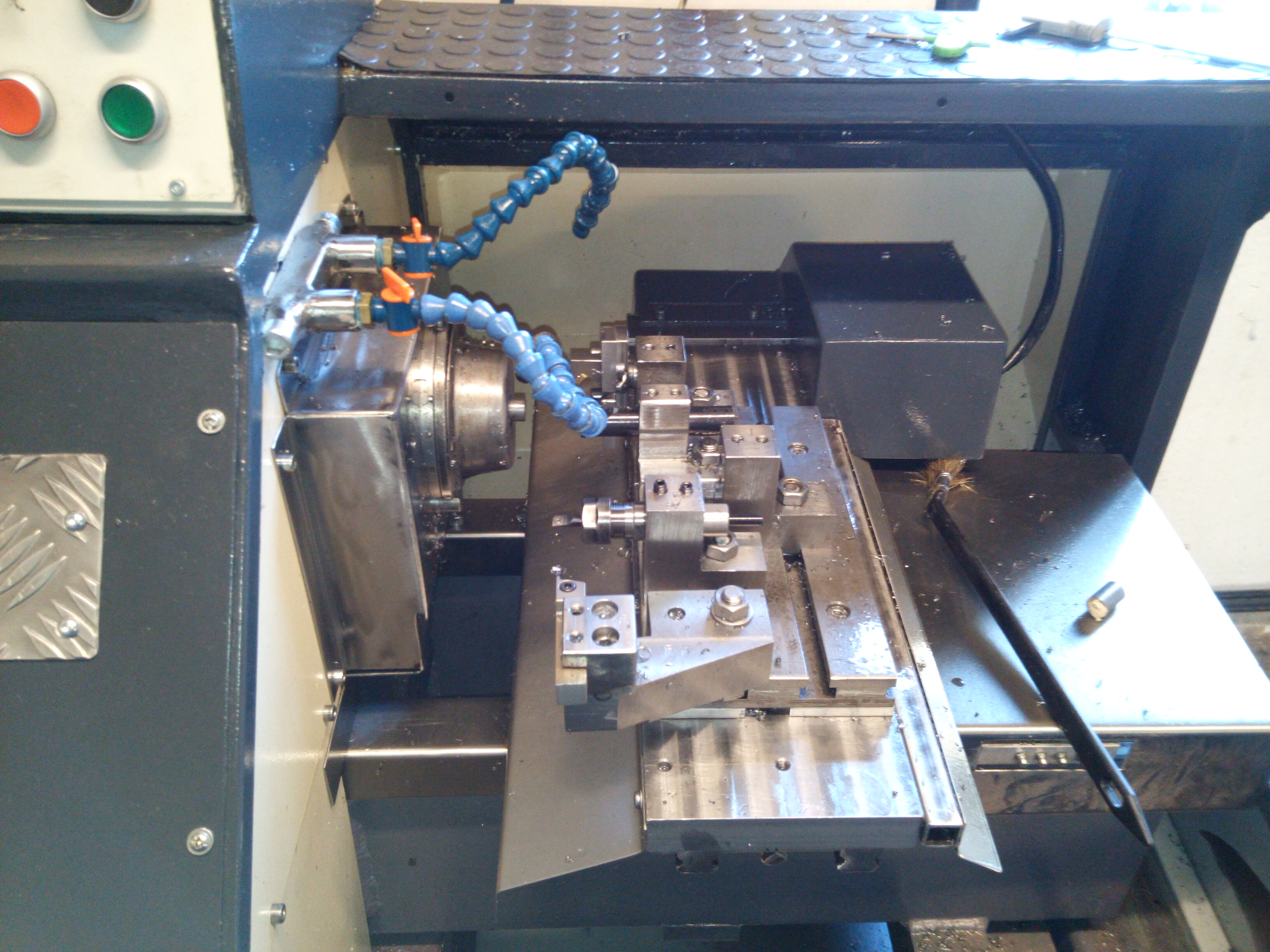 Prodám CNC soustruh domácí výroby. Vřeteno je ze soustružnického automatu A20, průchod vřetene 20mm, upínání vřetene pneumatické s popotahováním materiálu. Systém Mach 3. Rozměry cca 120x90x110cm. Cena 55000Kč.