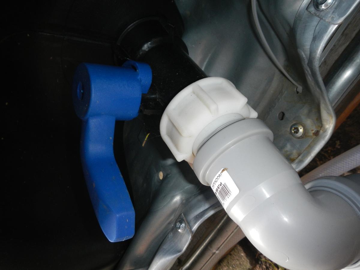 Kdyby byl nově udělaný špunt s průchodkou přímo na nádobě, tak by to celé bylo schované v prostoru výklenku nádrže. Takže to nikdo neukopne a případná těžká hadice to nevylomí.