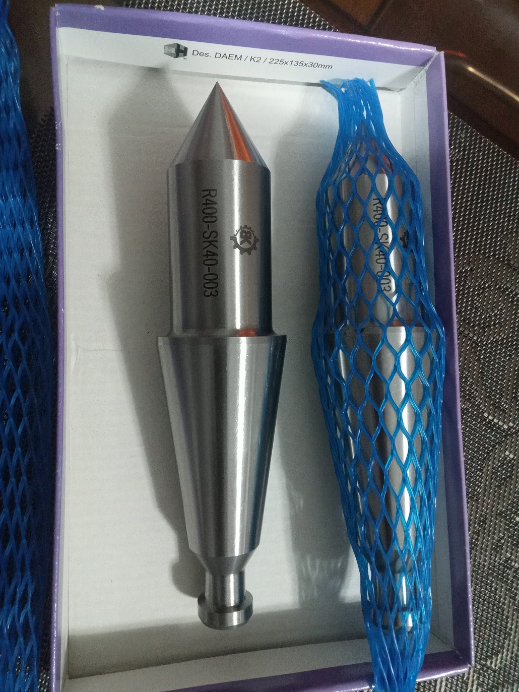 Brúsenie podperných hrotov, upínací kužeľ SK40, brúsený unášač, celkové obvodové hádzanie na ktorejkoľvek rotačnej ploche požadované pod 0,005mm.
