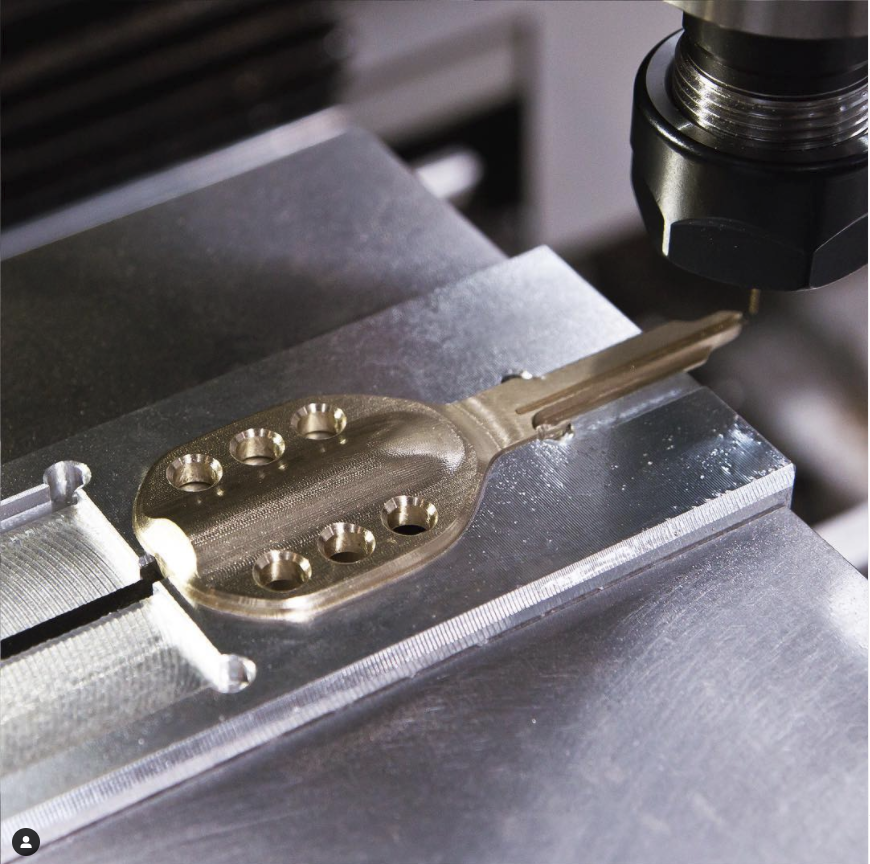 Na vyrobu neni potreba 5ti ose frezy, staci 3 osy. Zde ilustracni obrazek, i s pripravkem na uchyceni. (vlevo prvni faze obrabeni z polotovaru, napravo, kde je klic, druha strana obrabeni )