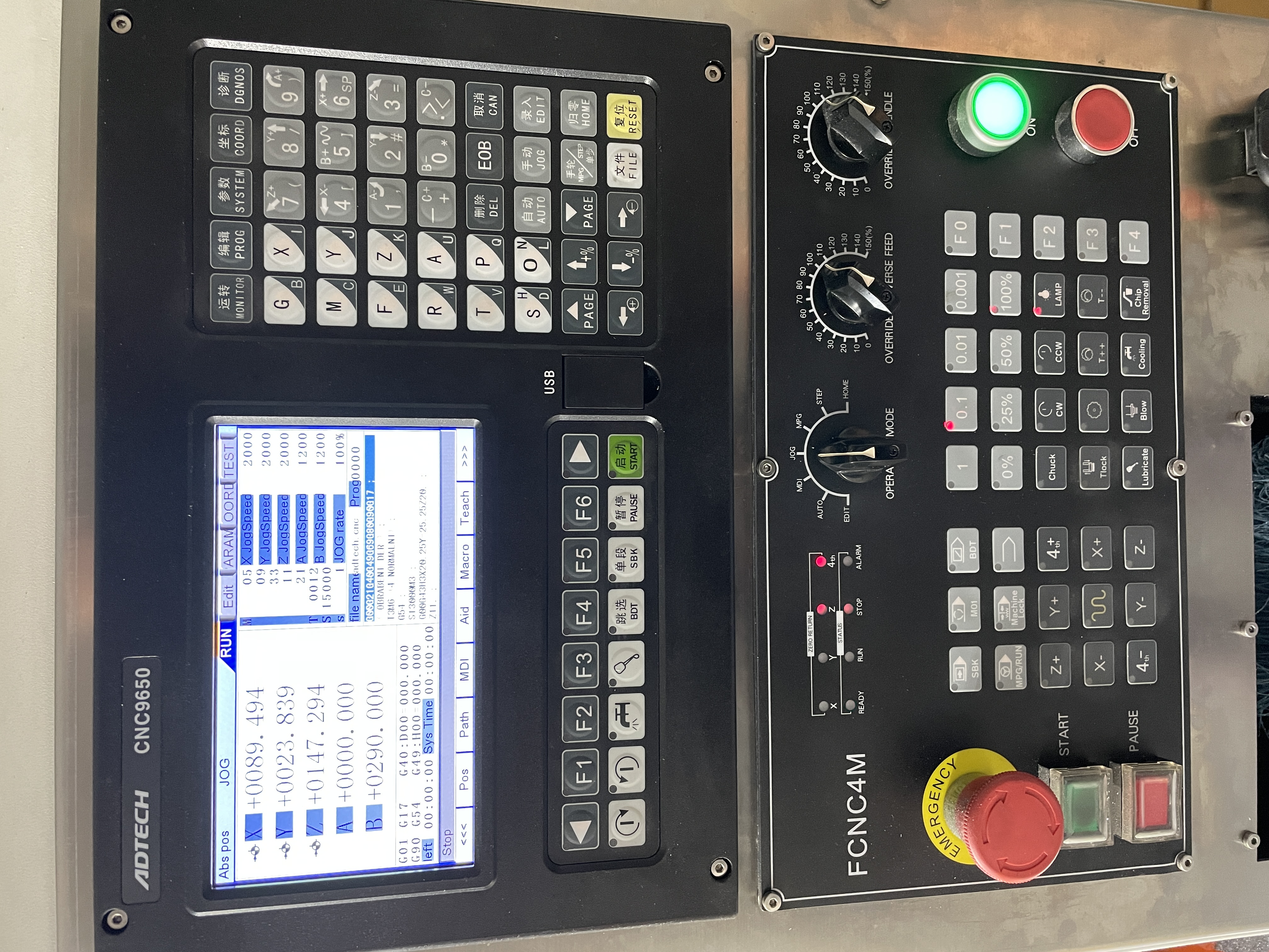 - řadič ADTECH 9650, kompatibilní s Fanuc, čínský velmi dobrý ekvivalent. Rychlý, spolehlivý, neznám zdaleka všechny možnosti, ale dokumentaci mám kompletní.