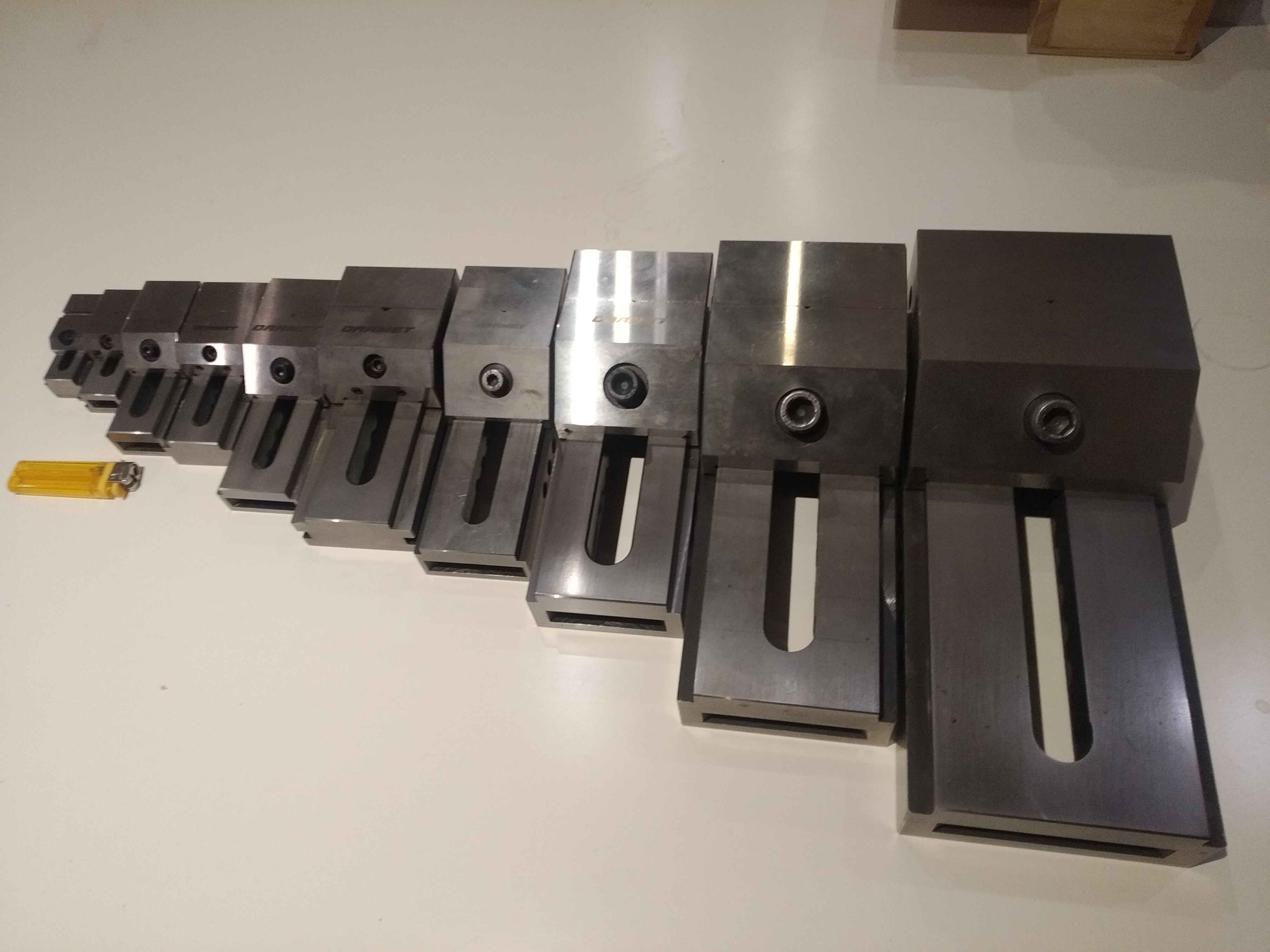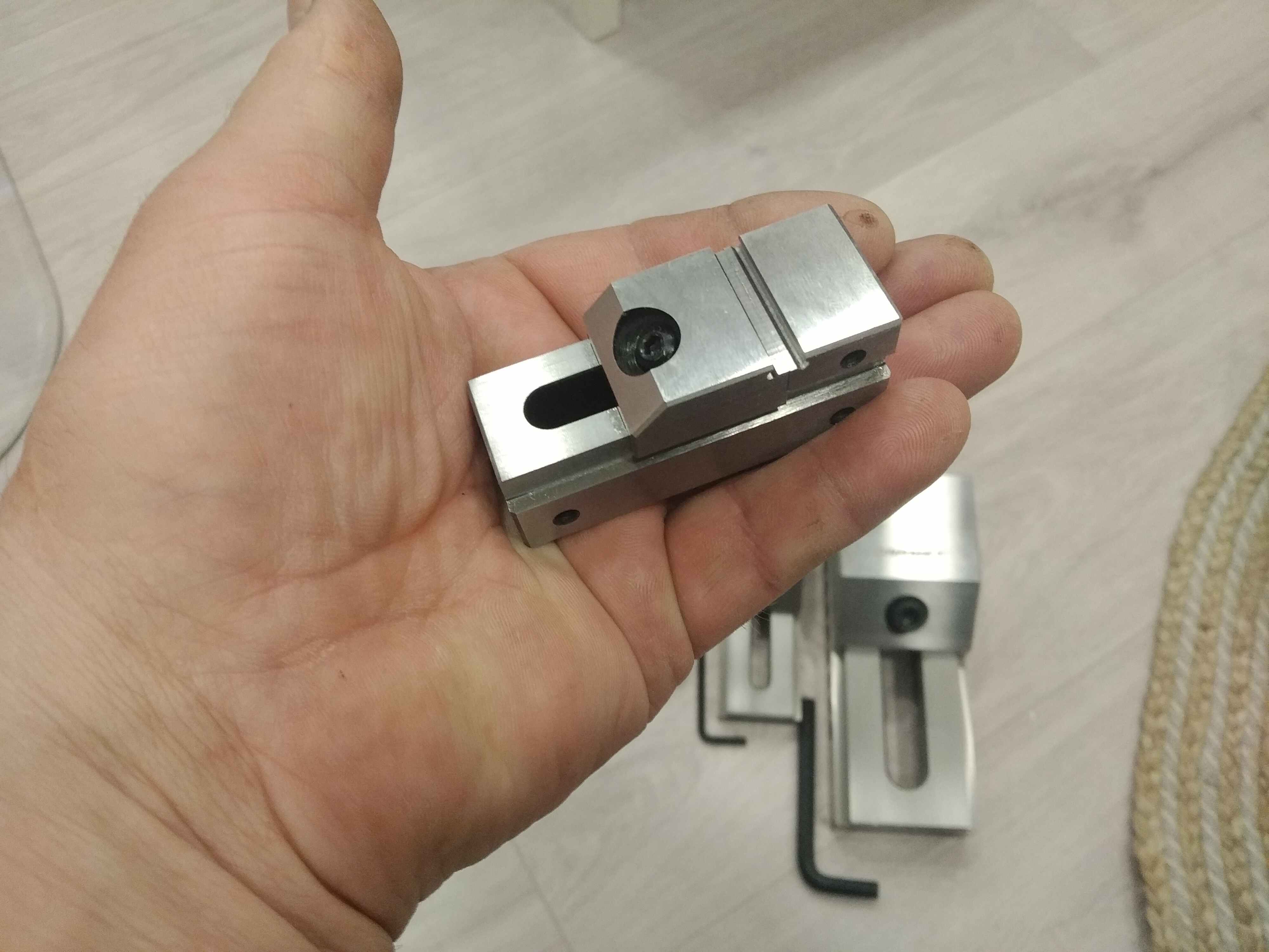 Jak se řeší nějak spolehlivě upnutí těhle brusičských svěráků? Některé mají po stranách vyfrezovanou drážku, u těch si dokážu představit upnutí přes malou upínku. Jak řešíte upnutí svěráků co mají po stranách jen díry?