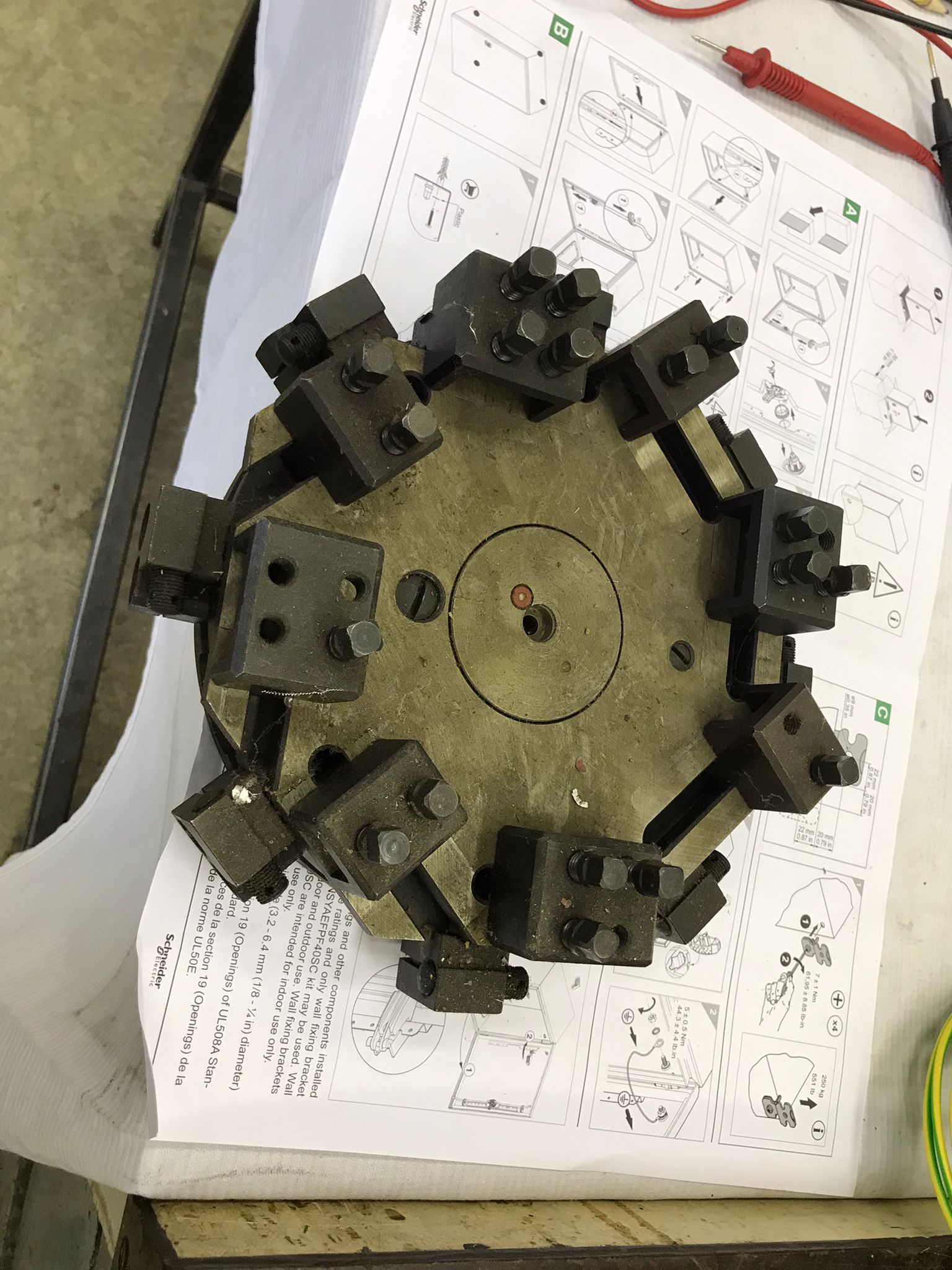 No jo, samo. Marek to věděl přesně, je to samozřejmě držák nožů, ktery udělá s SMka skoro revolverák. Musi se shodit nozovy suport, sundá se krytka na pricnem suportu, ta kulata co kryje serizovaci srouby matky. Na jeji misto zapadne stred, cele se to prisroubuje do drazek na zadni drzak nozu, osova vyska vyjde presně. A pakou se pootaci jeden nuz za druhym dle operaci. Snad budou fotky