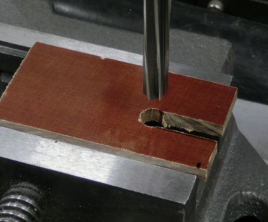chtěl jsem udělat zářez do pertinaxu, a vymyslel jsem to tak, že to říznu zhruba pilou a načisto to projedu frézou bokem.