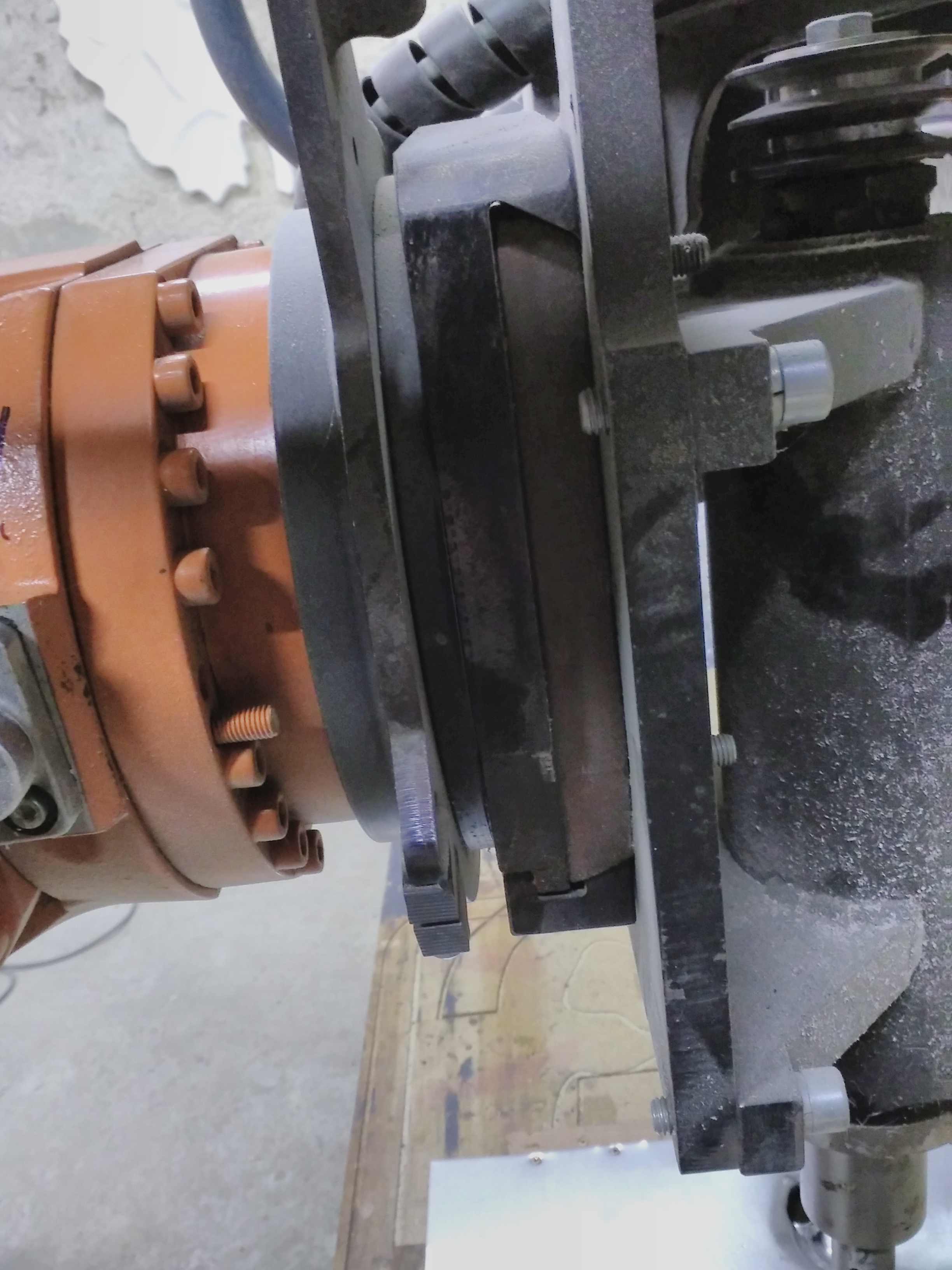 Požadavky jsou - nosnost asi 16 kg, předání energií to umět nemusí (vzduch, el. signály), automatické upnutí/odepnutí vzduchem to taky mít nemusí - výměna bude manuální třeba nějakým nástrojem/pákou. Čiže by šlo o ten úplně nejvíce easy toolchanger. Lícovaný průměr na přírubě robota pro nasazení toolchangeru nebo mezidesky je 63 h7.