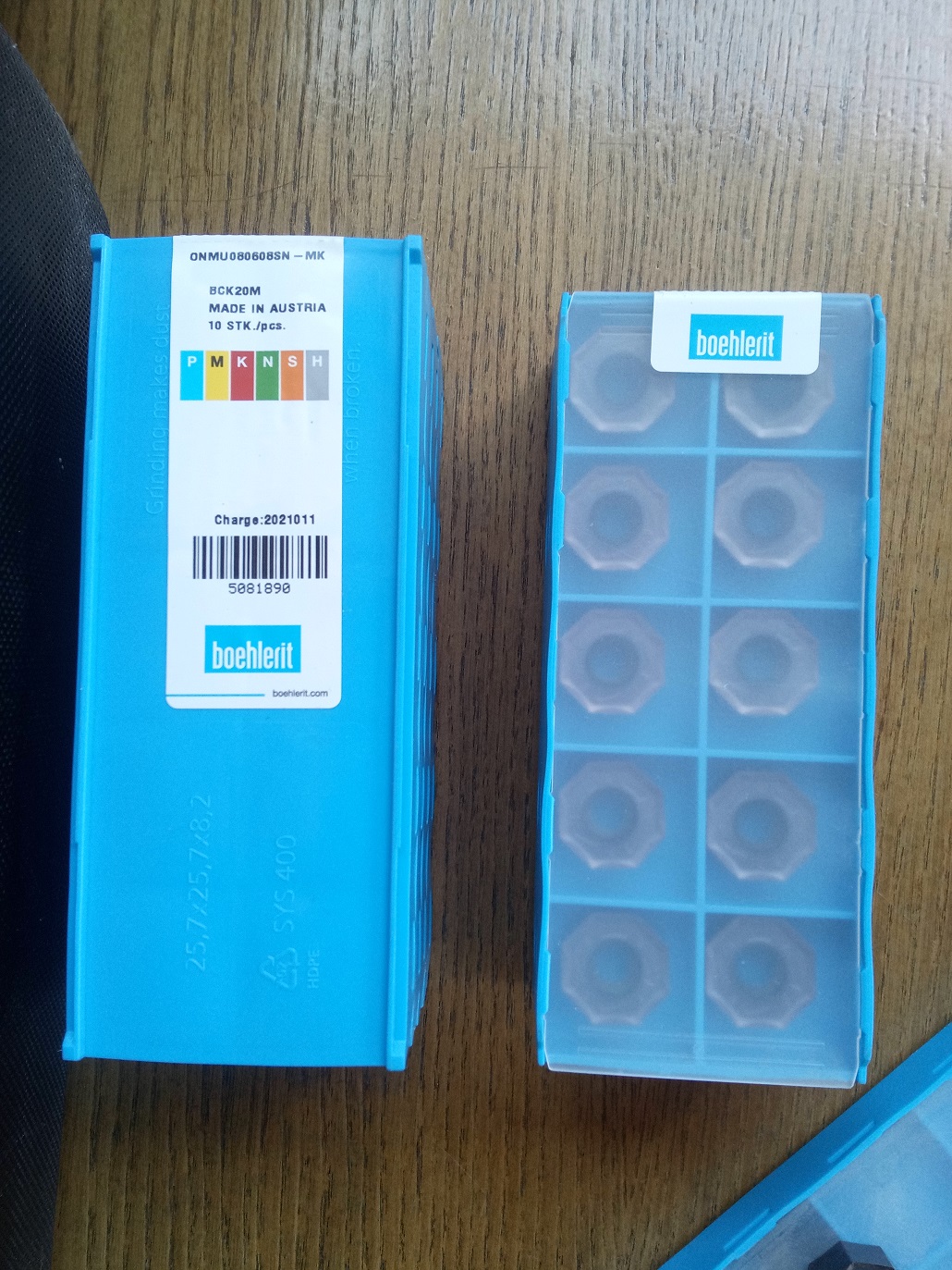 Predám novú nepoužitú frézu Boehlerit, priemer 200mm, 16 zubová na plátky ONMU. Taktiež predám 70+ks plátkov ONMU K20, 16 rezných hrán. Presné označenie frézy aj plátkov je na fotkách.