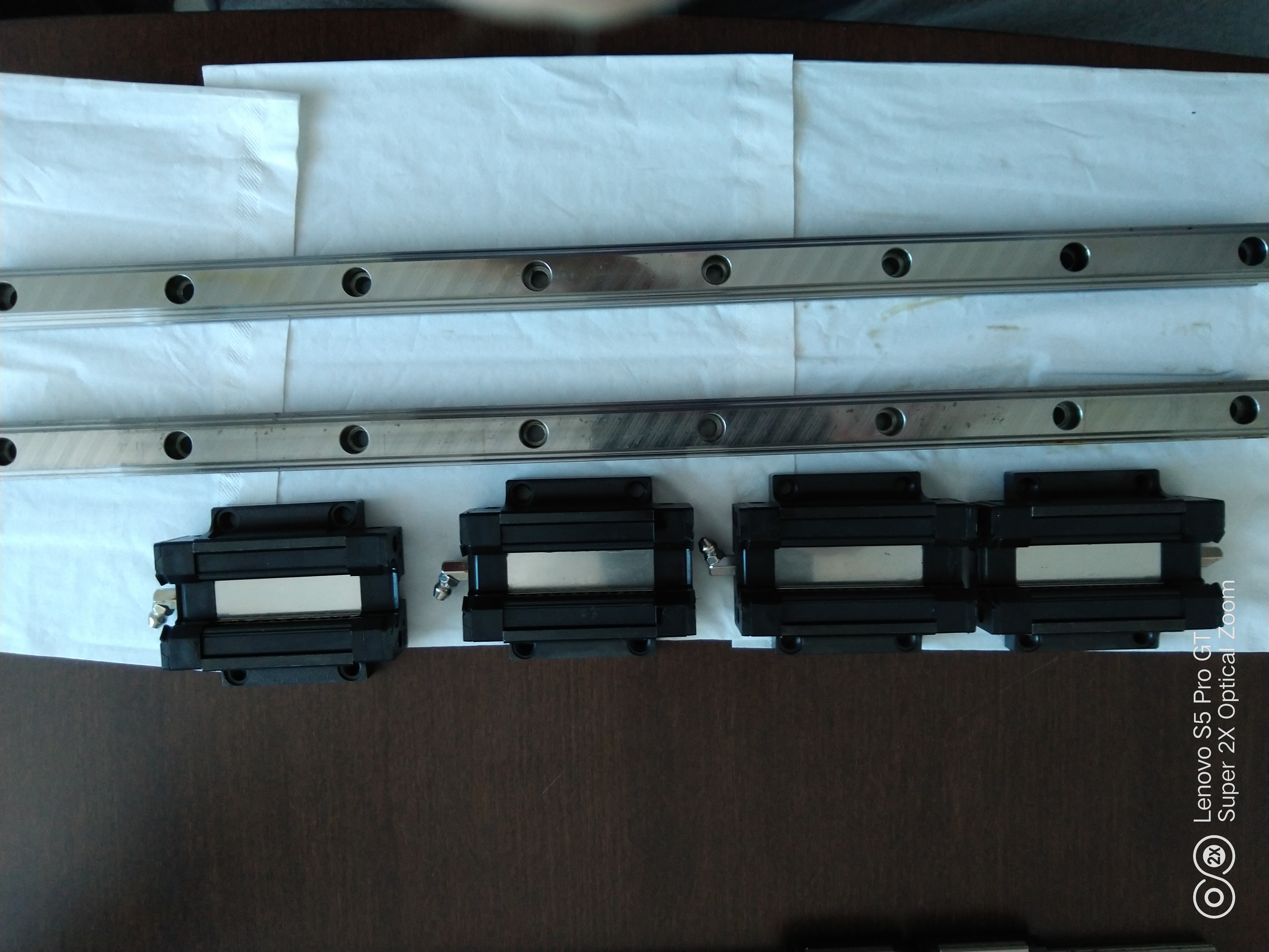 Použité lineárne vedenie 20mm ,dĺžka 450mm plus štyri vozíky.
