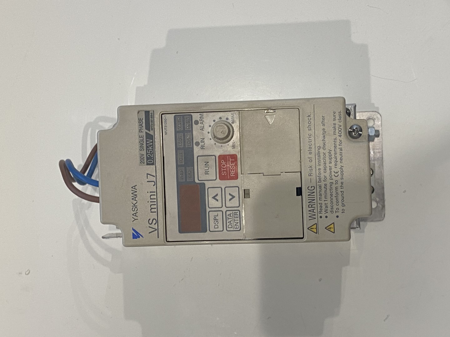 Prodám plně funkční 1F frekvenční měnič Yaskawa VS mini J7 0.25kW spolu s odrušovacím filtrem.